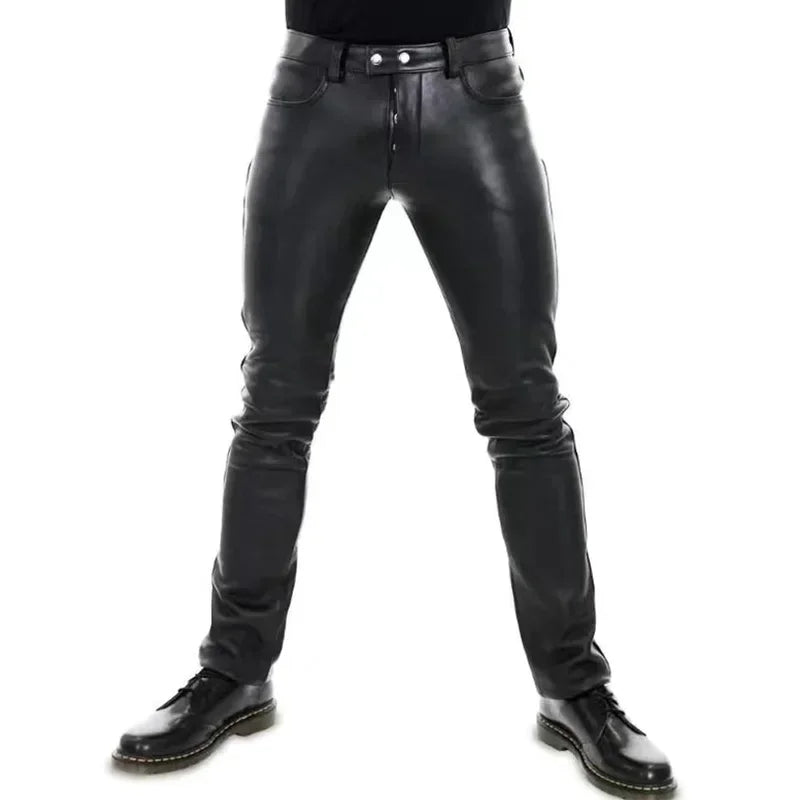 Step into timeless style with the Trend4us Men’s Classic Faux Leather Slim-Fit Pants. Featuring a sleek, tailored cut, these pants deliver a polished silhouette with a bold edge. Crafted from premium faux leather, they provide durability, comfort, and a glossy finish that elevates any outfit. Perfect for casual streetwear, concerts, or nightlife, these pants are a versatile wardrobe essential for the modern man.
