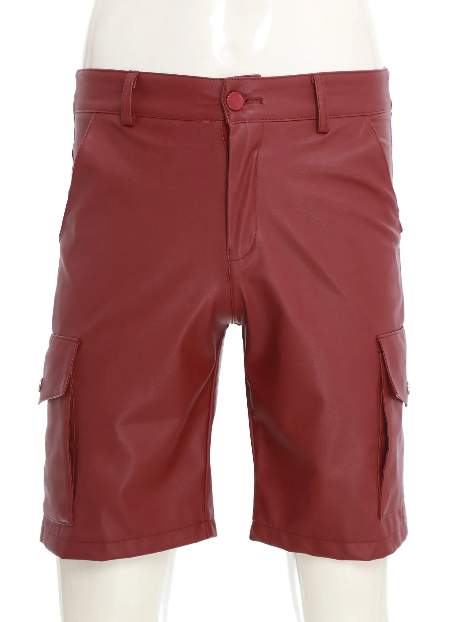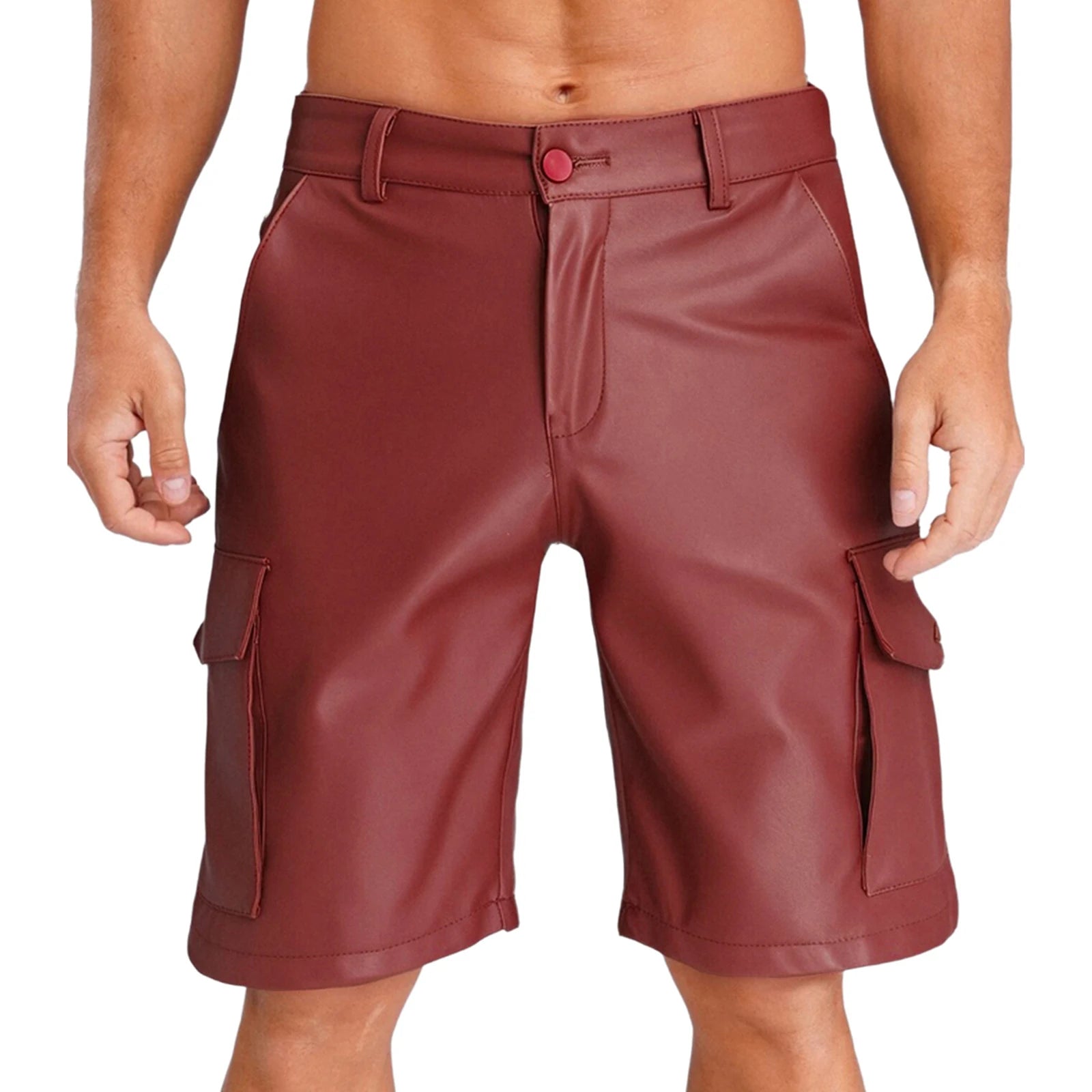 Bring bold utility style to your wardrobe with the Trend4us Men's Faux Leather Cargo Shorts — a perfect fusion of rugged function and sleek streetwear appeal. Crafted from premium PU-coated fabric for a smooth leather-look finish, these shorts feature multiple flap pockets, a mid-rise waist, and a relaxed fit for all-day comfort. Whether styled casually or for a statement streetwear look, these cargo shorts deliver both style and practicality in red or black.