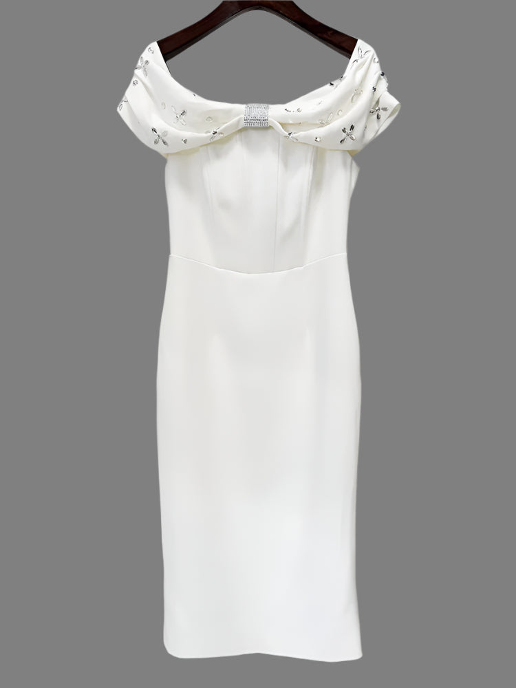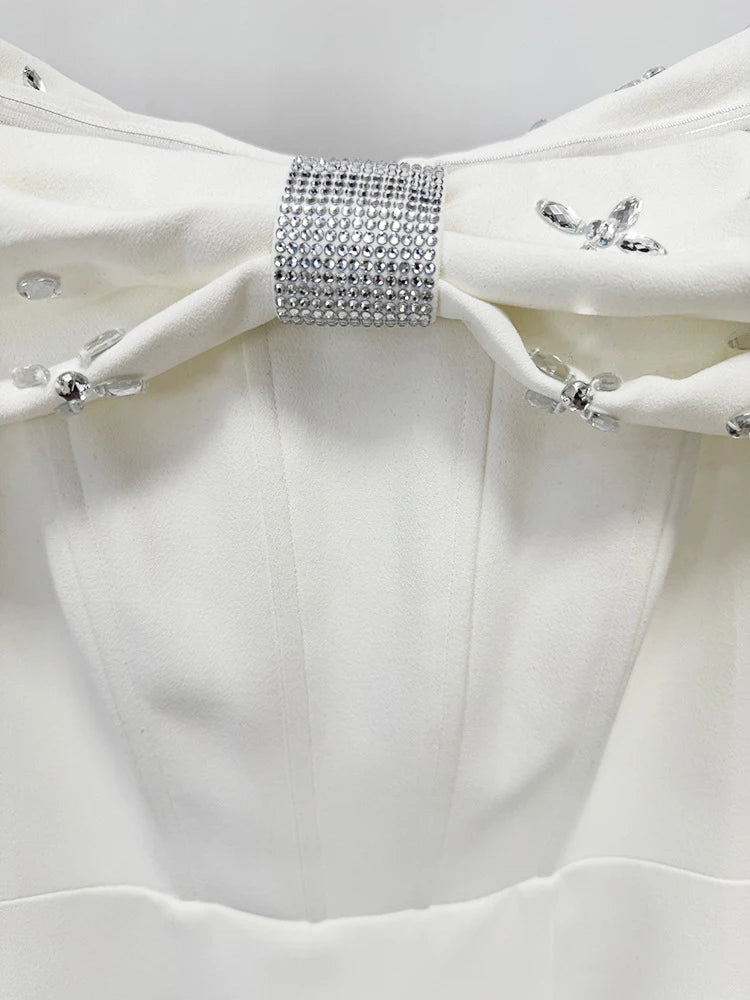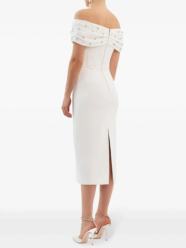 Trend4us Couture Crystal-Bow Bardot Midi Gown