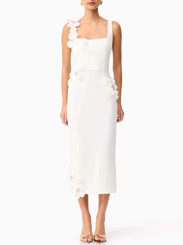 Trend4us Elegant 3D Floral Appliqué Midi Dress