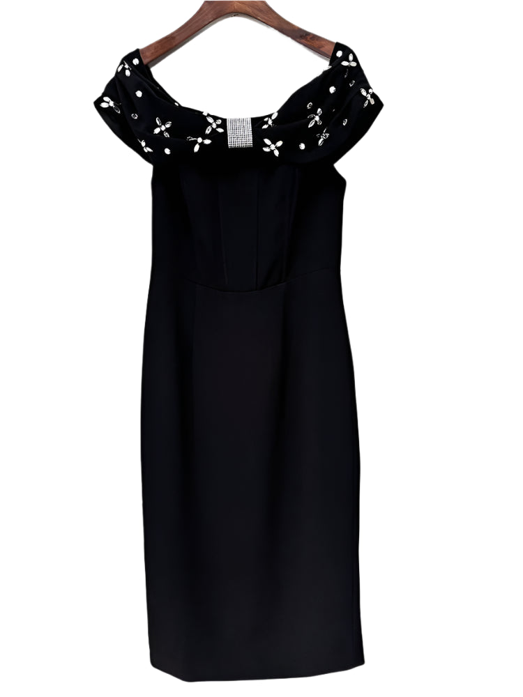 Trend4us Women’s Luxury Beaded Crystal Long Sleeve Dress