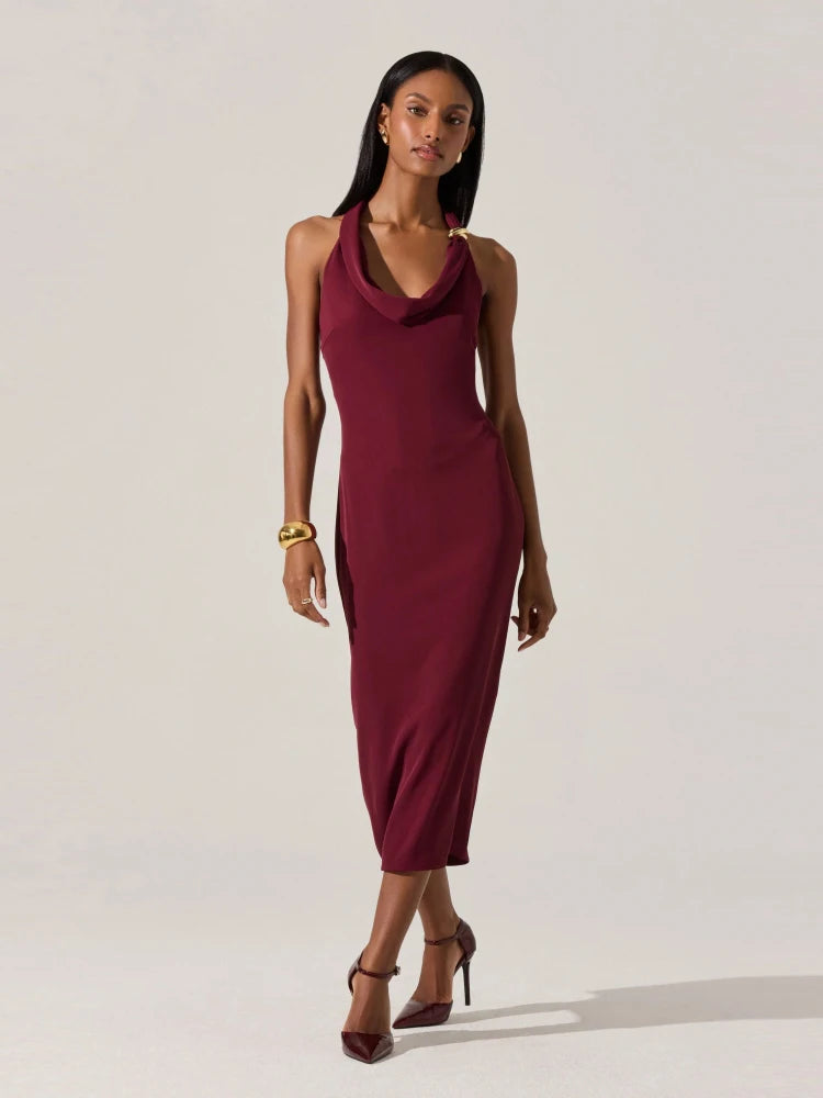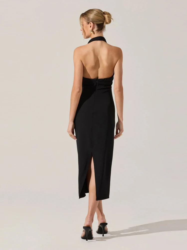 Trend4us Elegant Halter Neck Backless Midi Dress