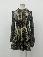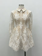 Trend4us Classic Sheer Lace Long Sleeve Collared Mini Dress