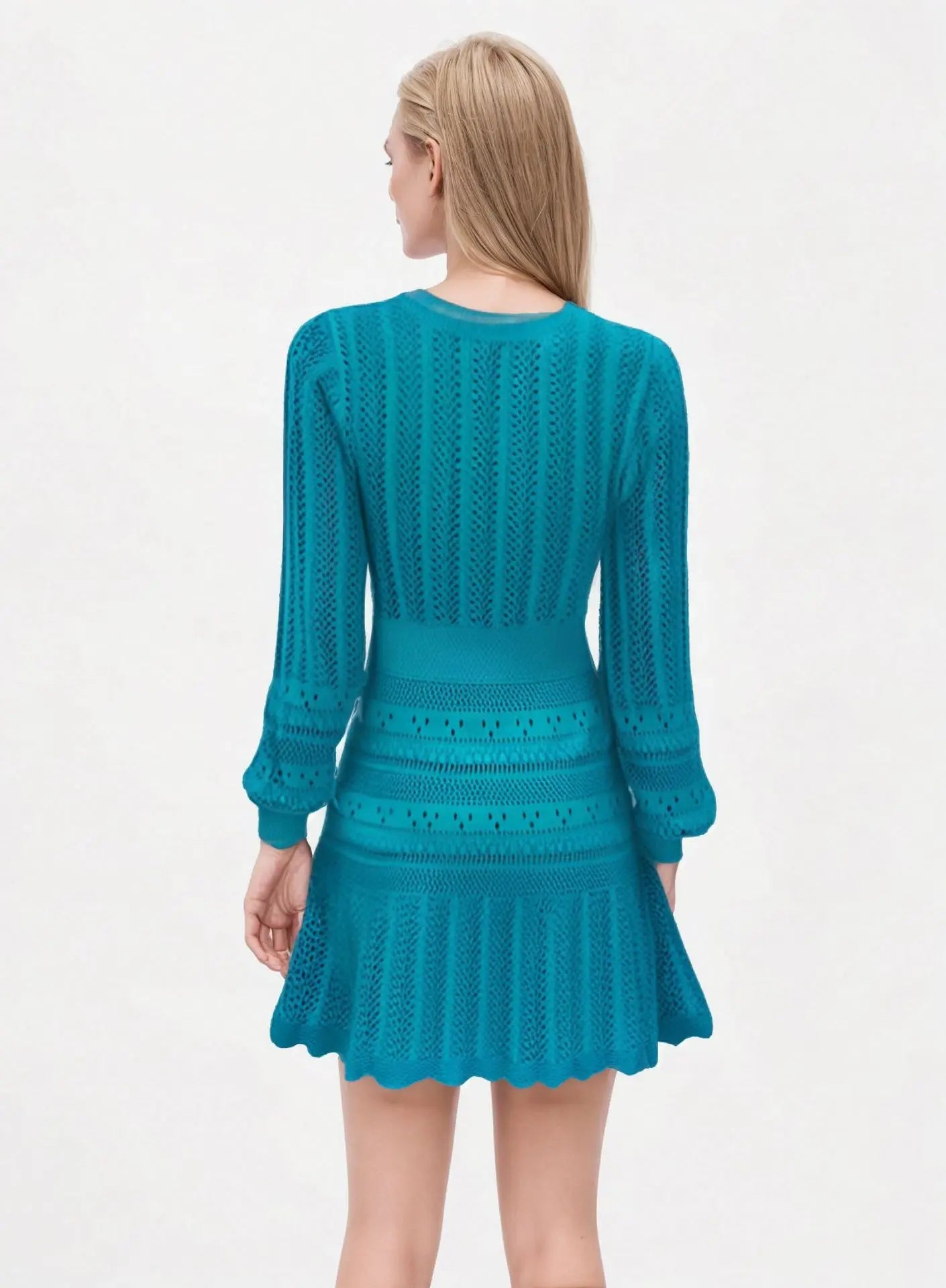 Trend4us Crochet Knit Flare Sleeve Mini Dress