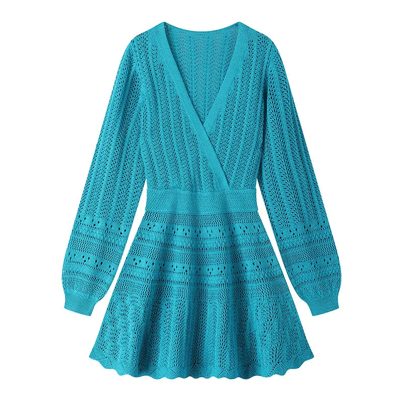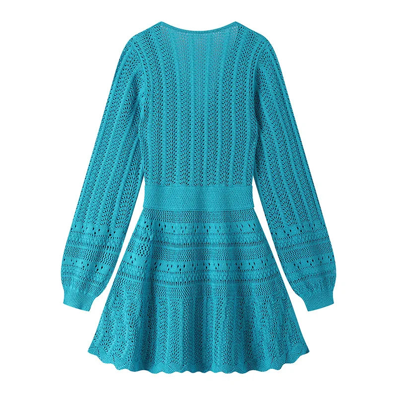 The Trend4us Crochet Knit Flare Sleeve Mini Dress brings effortless elegance to your wardrobe. Crafted from breathable crochet-style knit fabric, this dress features a flattering surplice V-neckline, long flare sleeves, and a defined waistband that accentuates the silhouette. The flared skirt with scalloped edges adds a playful touch, while the intricate openwork patterns offer feminine charm and seasonal versatility. Perfect for spring events, resort getaways, or stylish daywear.