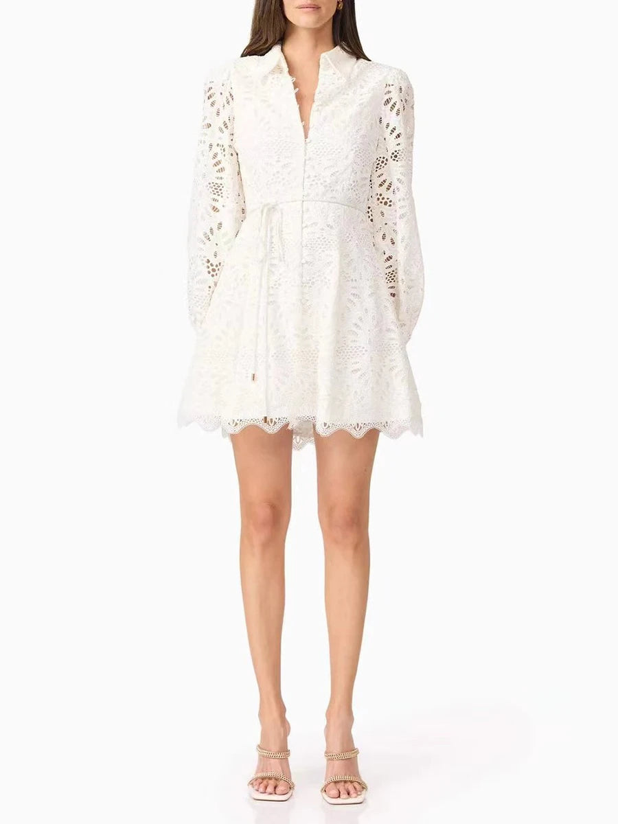 Trend4us Elegant Lace Long Sleeve Mini Dress