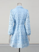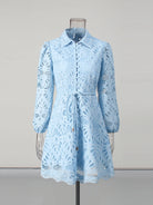 Step into timeless sophistication with the Trend4us Elegant Lace Long Sleeve Mini Dress. Crafted from delicate floral lace, this mini dress features long sheer sleeves, a collared neckline, and a flattering A-line silhouette. The scalloped hemline and cinched waist add a romantic charm, while the all-over lace pattern ensures elegance with every step. Perfect for bridal showers, garden parties, evening events, or any occasion where chic femininity takes center stage.