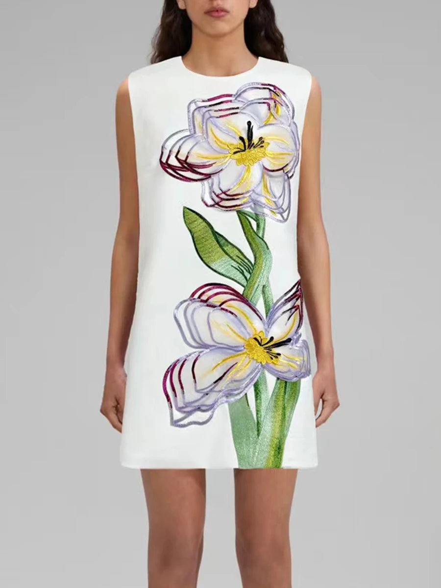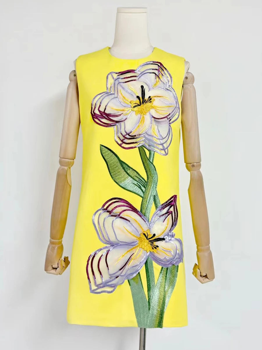 Brighten up your wardrobe with the Trend4us Floral Patchwork Sleeveless Mini Dress, a vibrant fusion of artistry and elegance. Featuring bold 3D floral embroidery on a structured mini silhouette, this sleeveless dress makes a statement with its oversized petal detailing and vivid color options. The sleek round neckline and back zipper closure offer a polished finish, while the straight-cut design provides a flattering fit for any occasion.