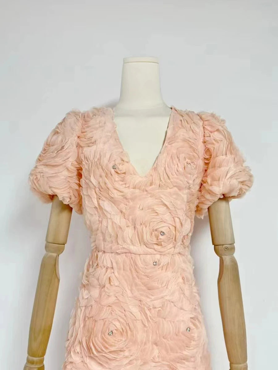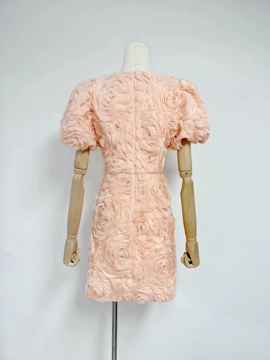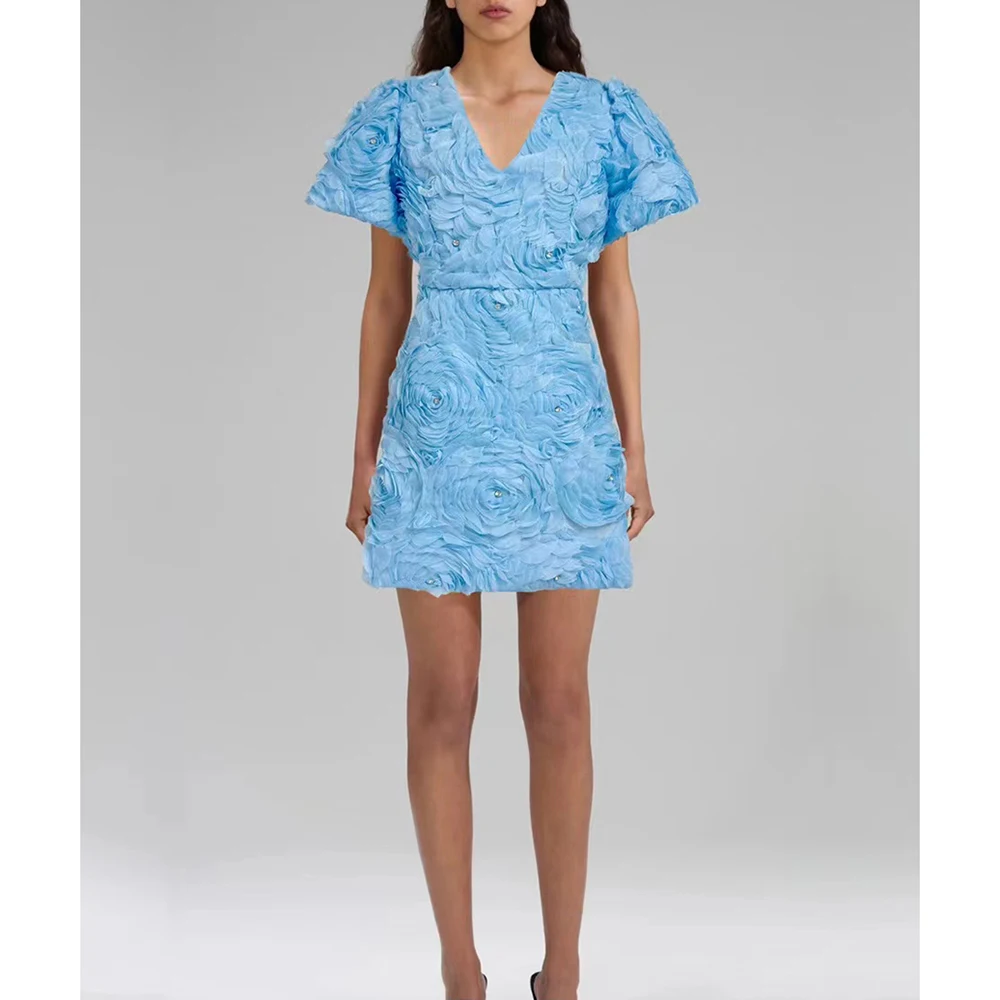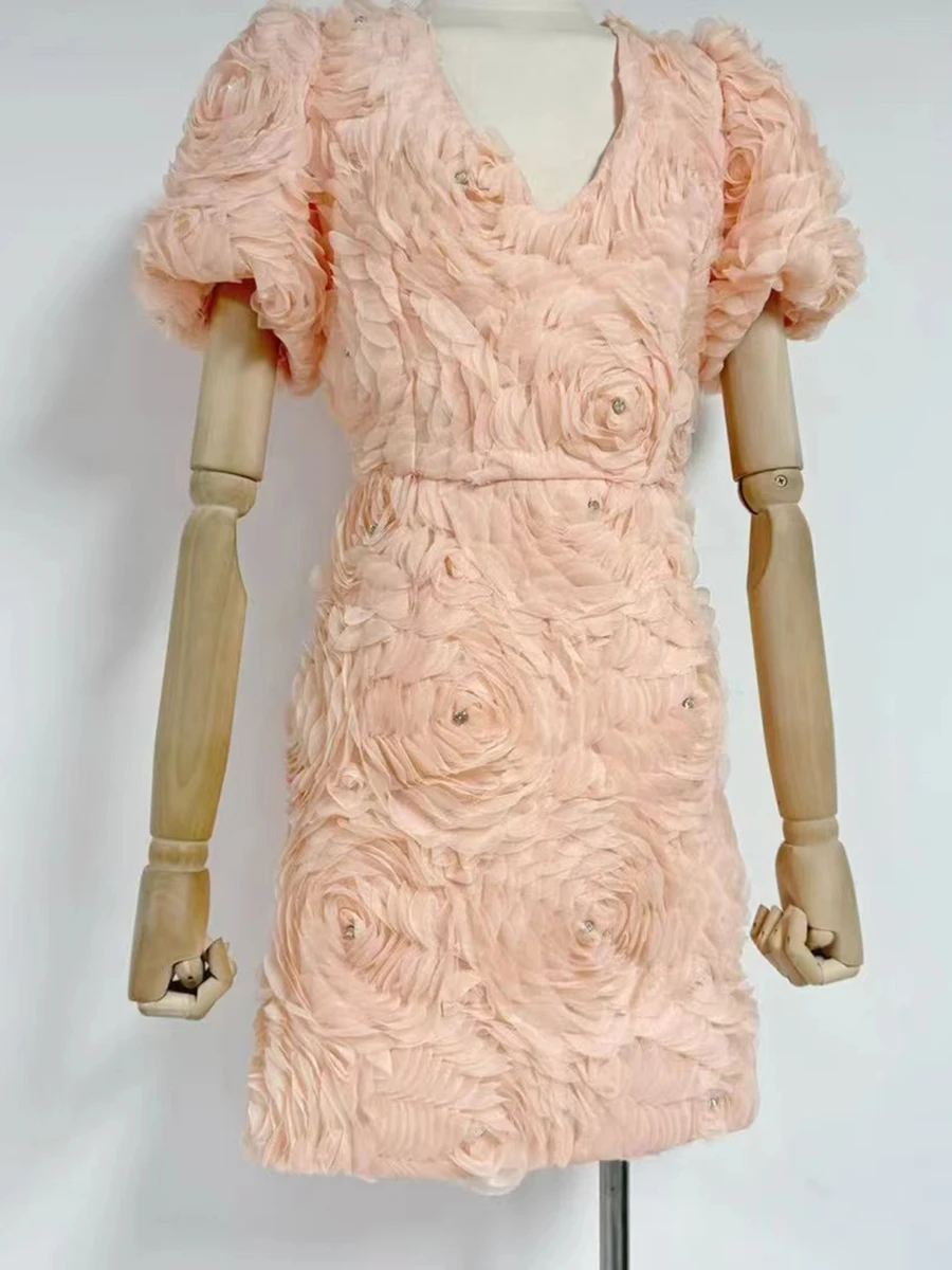 Make an unforgettable entrance in the Trend4us Luxe Floral Appliqué Puff Sleeve Mini Dress, featuring intricate 3D floral appliqués that create stunning texture and dimension. Designed with a flattering V-neckline and voluminous puff sleeves, this mini dress balances romance and modern glamour. Perfect for weddings, cocktail parties, or upscale events, this statement piece effortlessly elevates your eveningwear wardrobe.