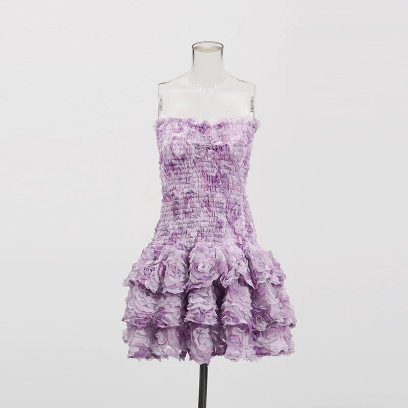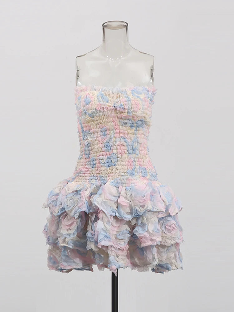 Turn heads in the Trend4us Luxe Rosette Strapless Ruffle Mini Dress, a dreamy blend of texture and romance. Crafted with a fully smocked bodice that sculpts the silhouette, this strapless mini dress features an extravagant layered skirt adorned with 3D floral rosettes for a voluminous, couture-inspired look. The soft, lightweight fabric offers both structure and movement, making it perfect for garden parties, evening events, or any occasion that calls for whimsical elegance. Available in pastel shades and bold hues, this dress is a statement piece that radiates feminine charm.