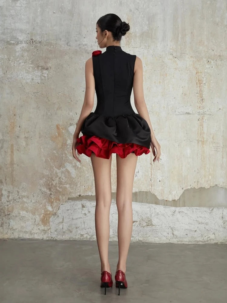 Unleash couture drama in the Trend4us Luxe Sculpted Rosette Petal Mini Dress—a masterpiece of modern elegance and bold femininity. This striking mini dress features a sleek, high-neck silhouette with a sleeveless cut, contrasted by an extravagant 3D rosette skirt made of sculpted satin petals in a vivid red hue. A matching shoulder rosette adds balance and allure, while the fitted bodice accentuates the waist. Finished with a hidden back zipper for a clean, sculpted look, this statement piece is made for fashion-forward evenings, galas, and editorial moments.