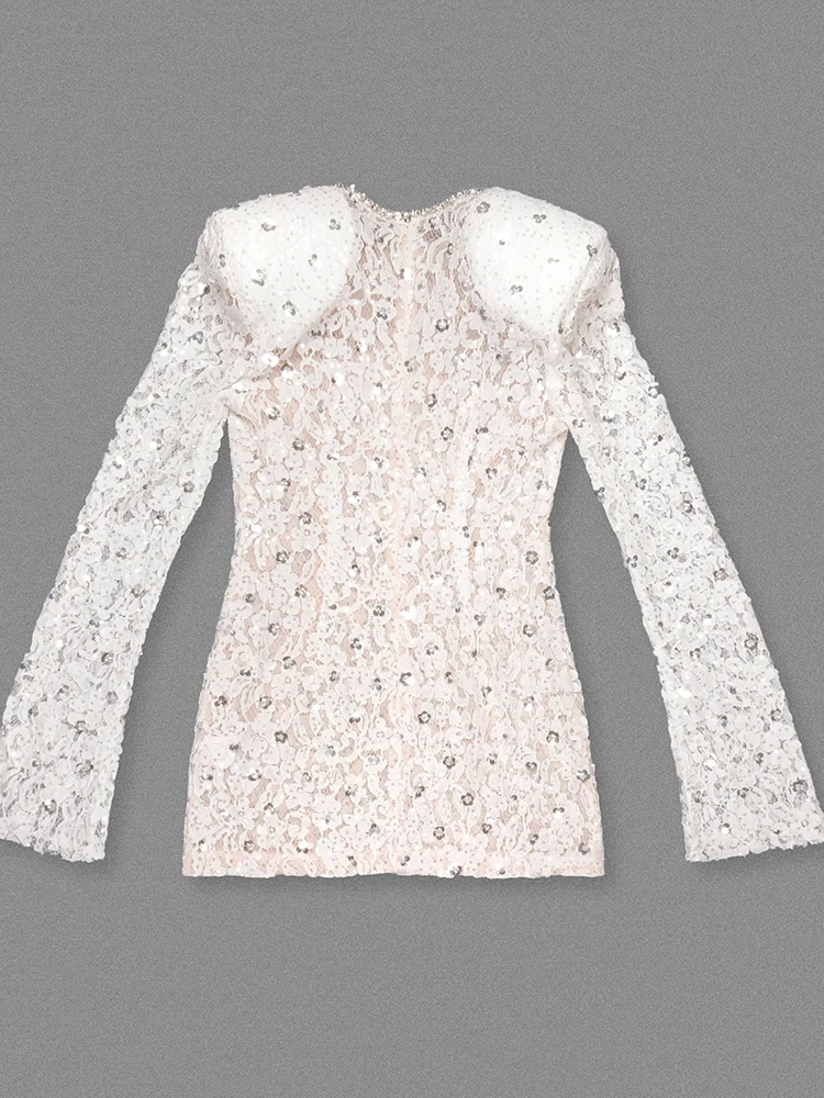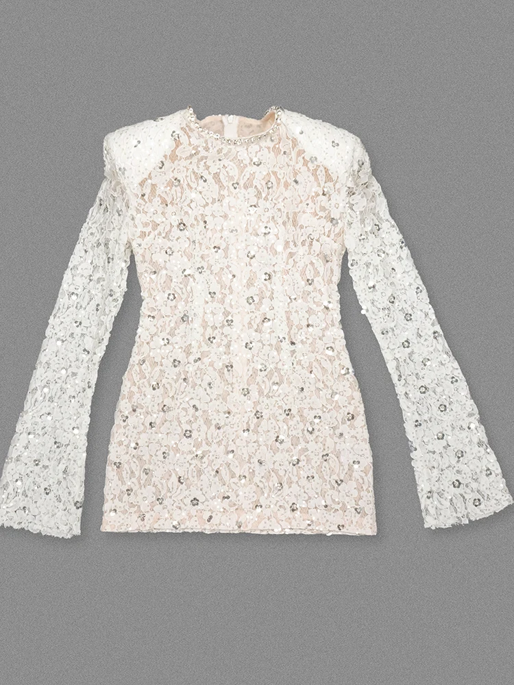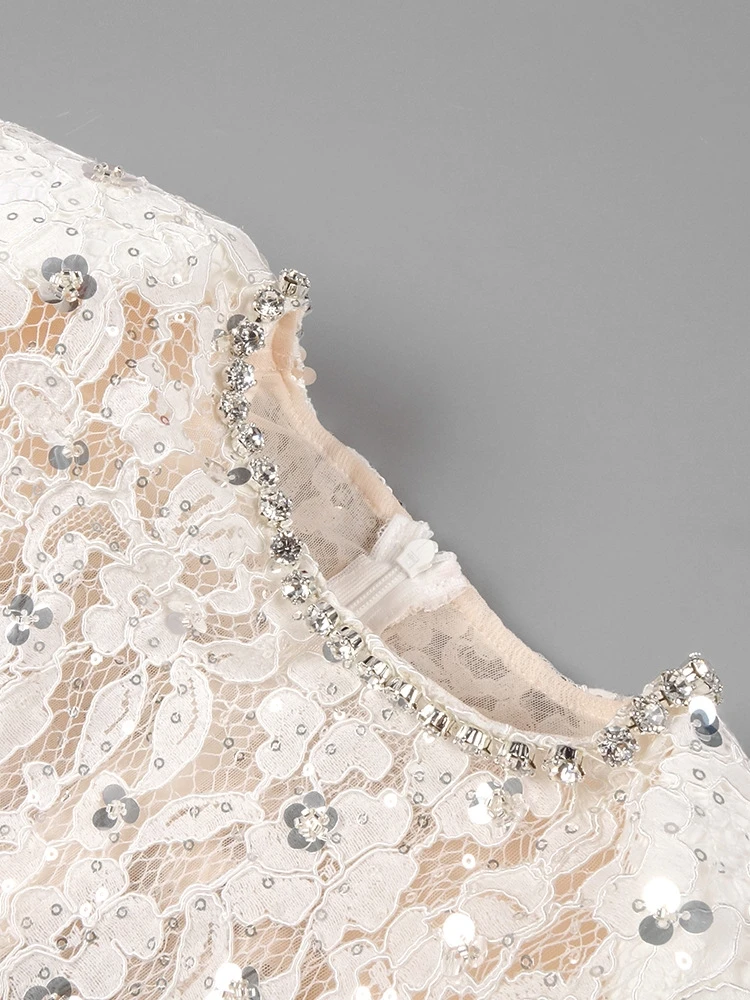 Trend4us Luxe Sequin Lace Diamonds Structured Mini Dress