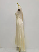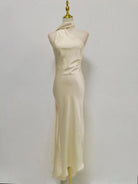Trend4us Elegant Satin Halter Backless Scarf Maxi Dress