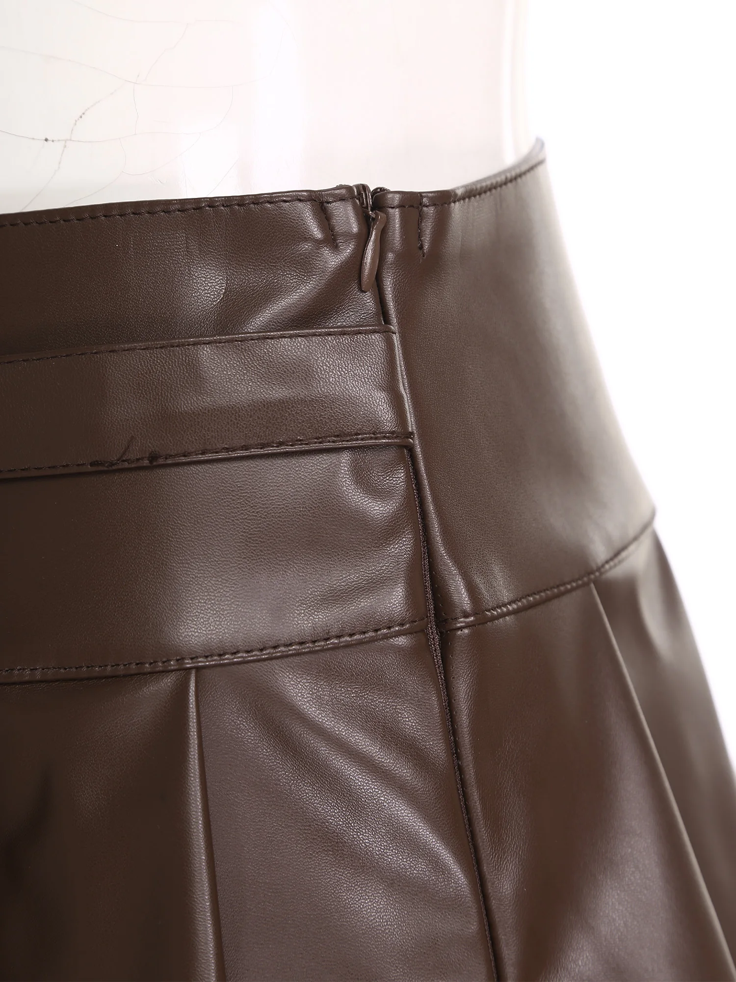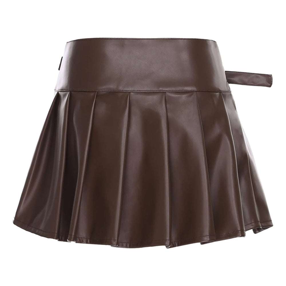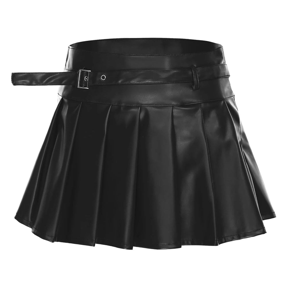Elevate your wardrobe with the bold sophistication of the Trend4us High-Waist Faux Leather Pleated Mini Skirt—a modern statement piece designed to sculpt, flatter, and turn heads. Crafted from premium faux leather with a smooth, high-shine finish, this mini skirt features sharp pleats that create dynamic movement and a flattering A-line silhouette.