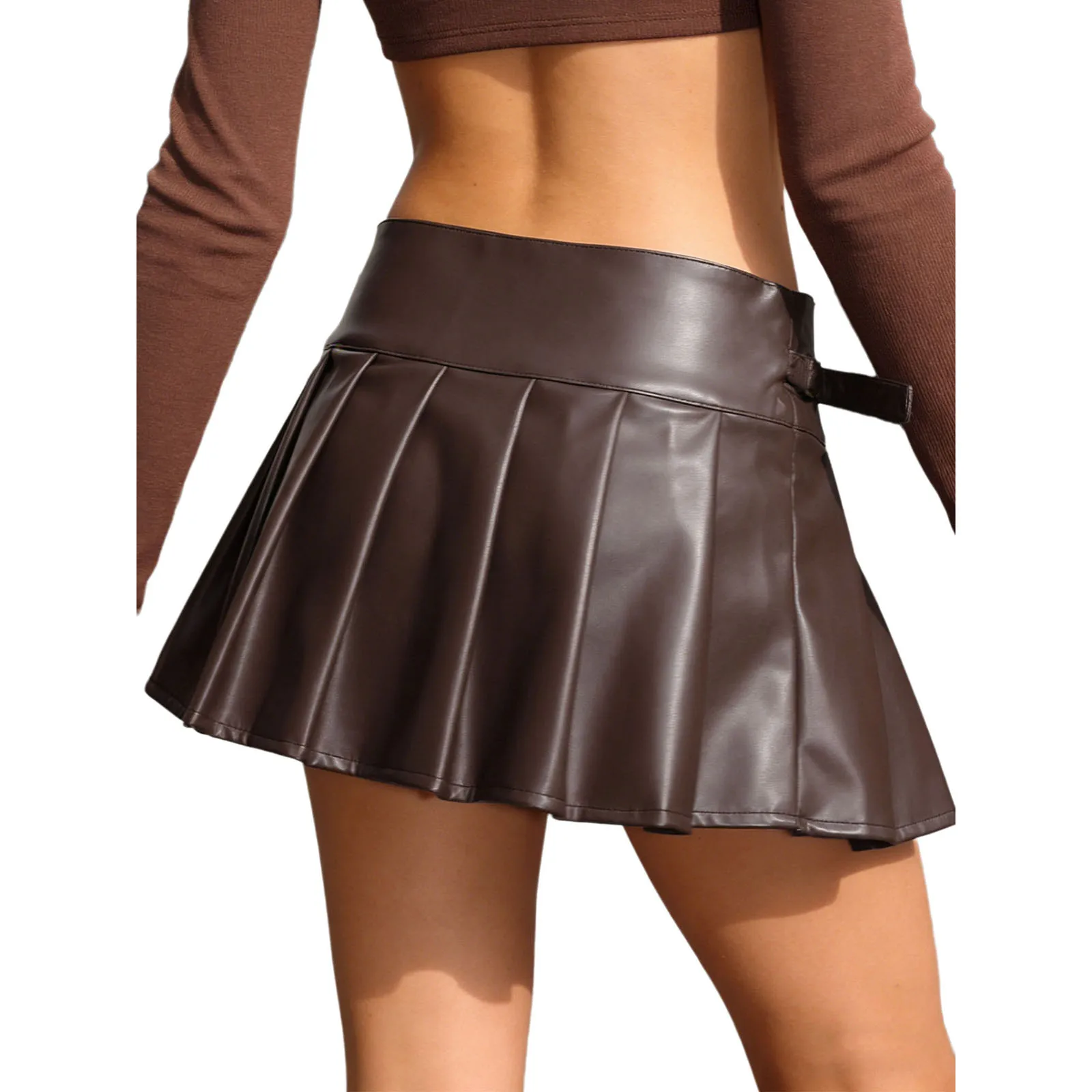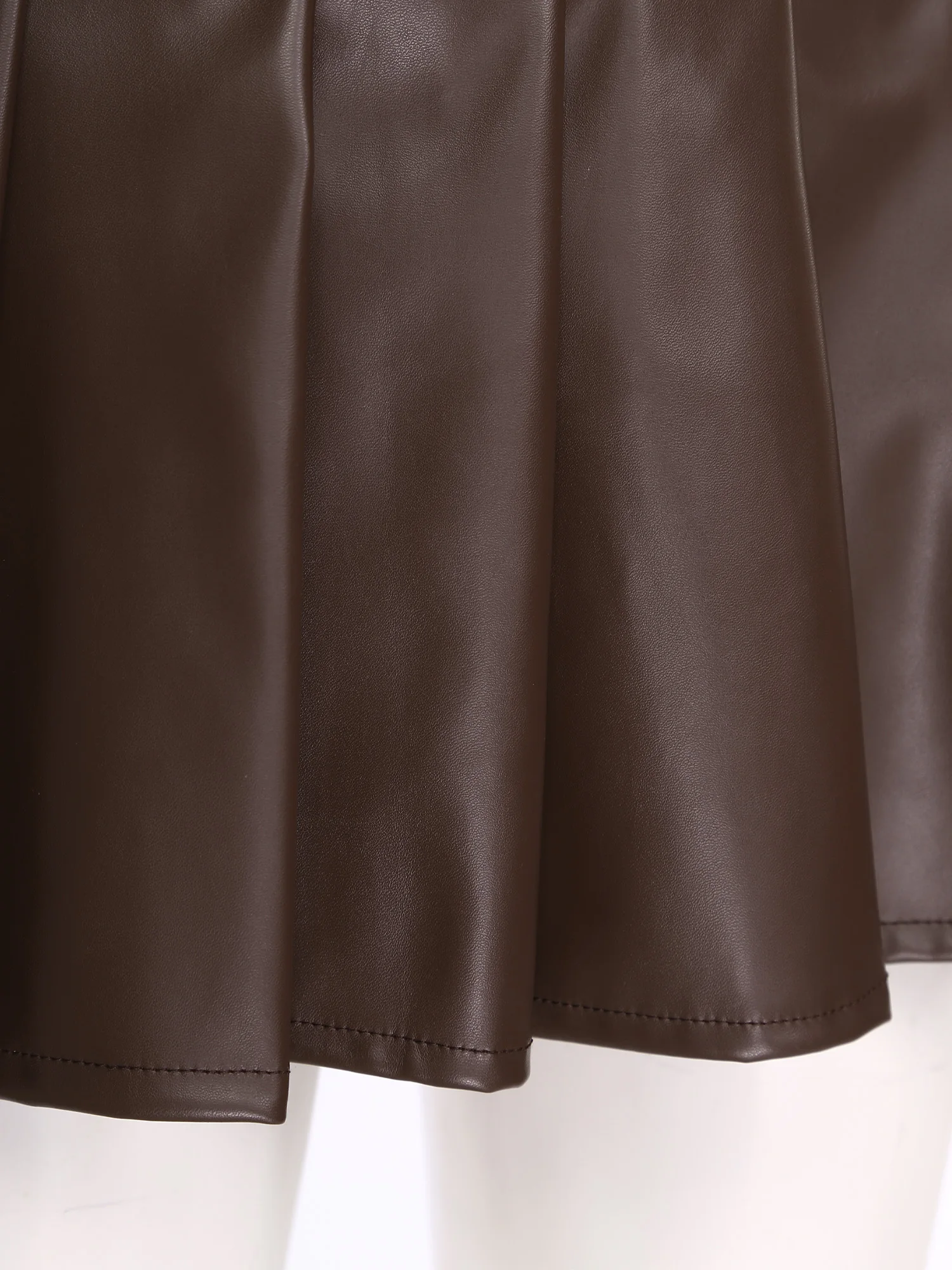 Trend4us High-Waist Faux Leather Pleated Mini Skirt