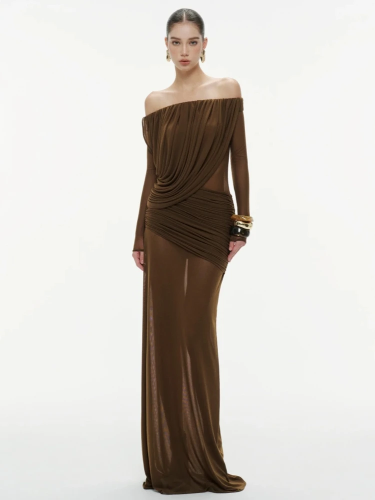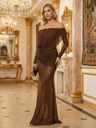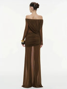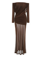 Trend4us Luxe Off-Shoulder Sheer Draped Maxi Gown
