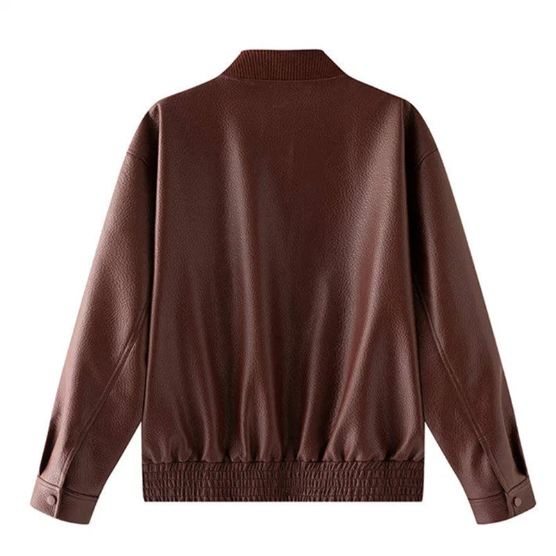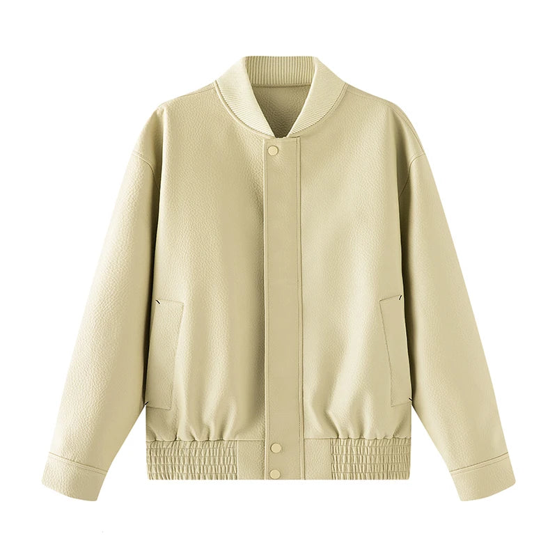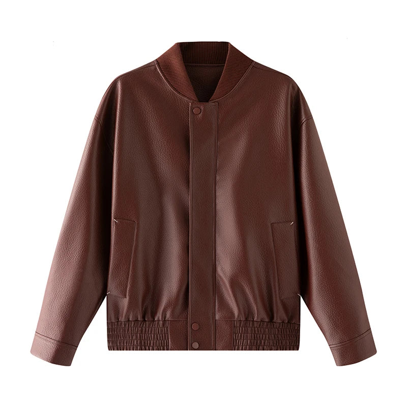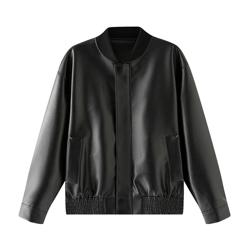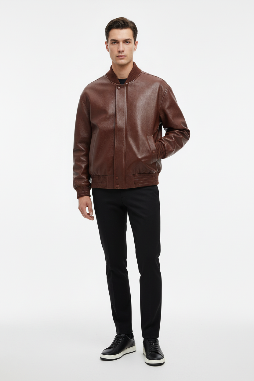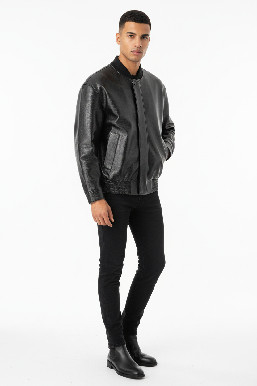 Elevate your outerwear collection with this sleek faux leather bomber jacket. Crafted with premium vegan leather, this modern classic combines the iconic bomber silhouette with contemporary details for a versatile piece that transitions effortlessly from day to night.