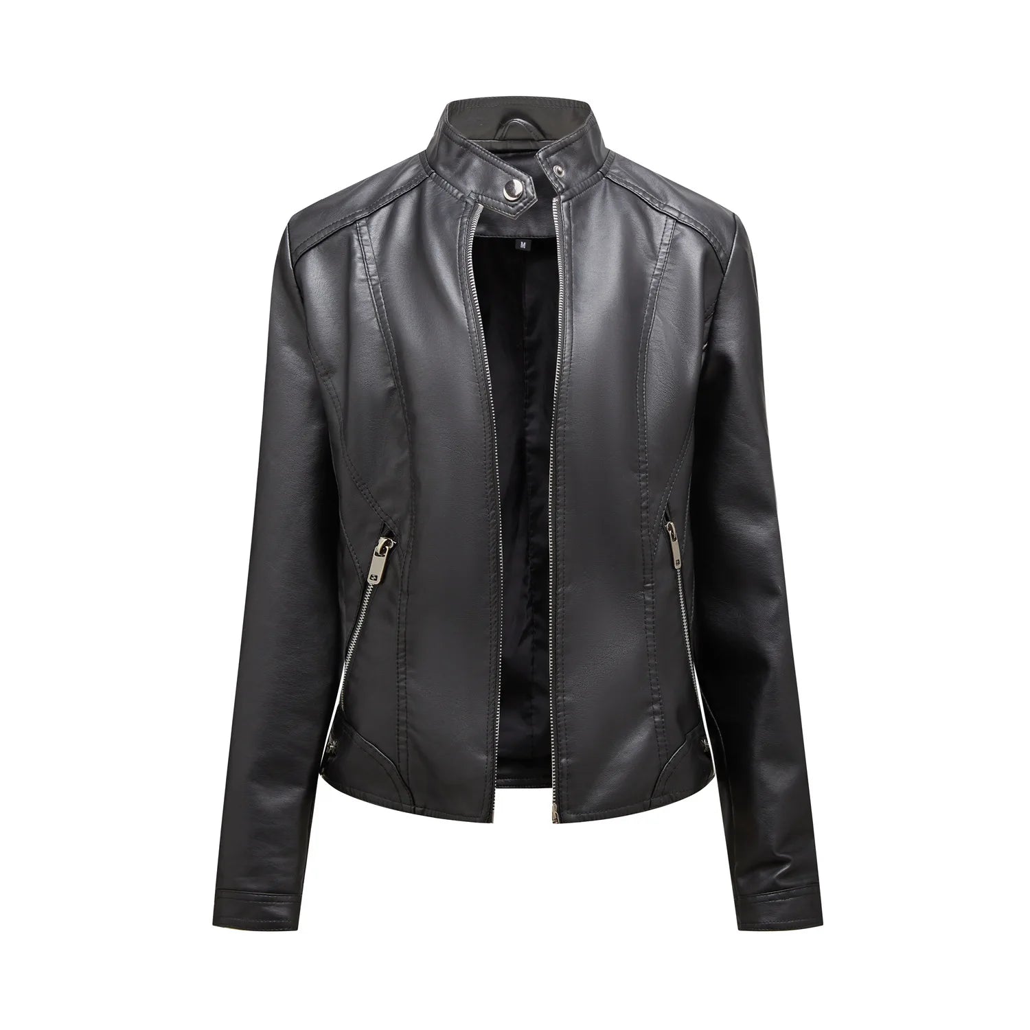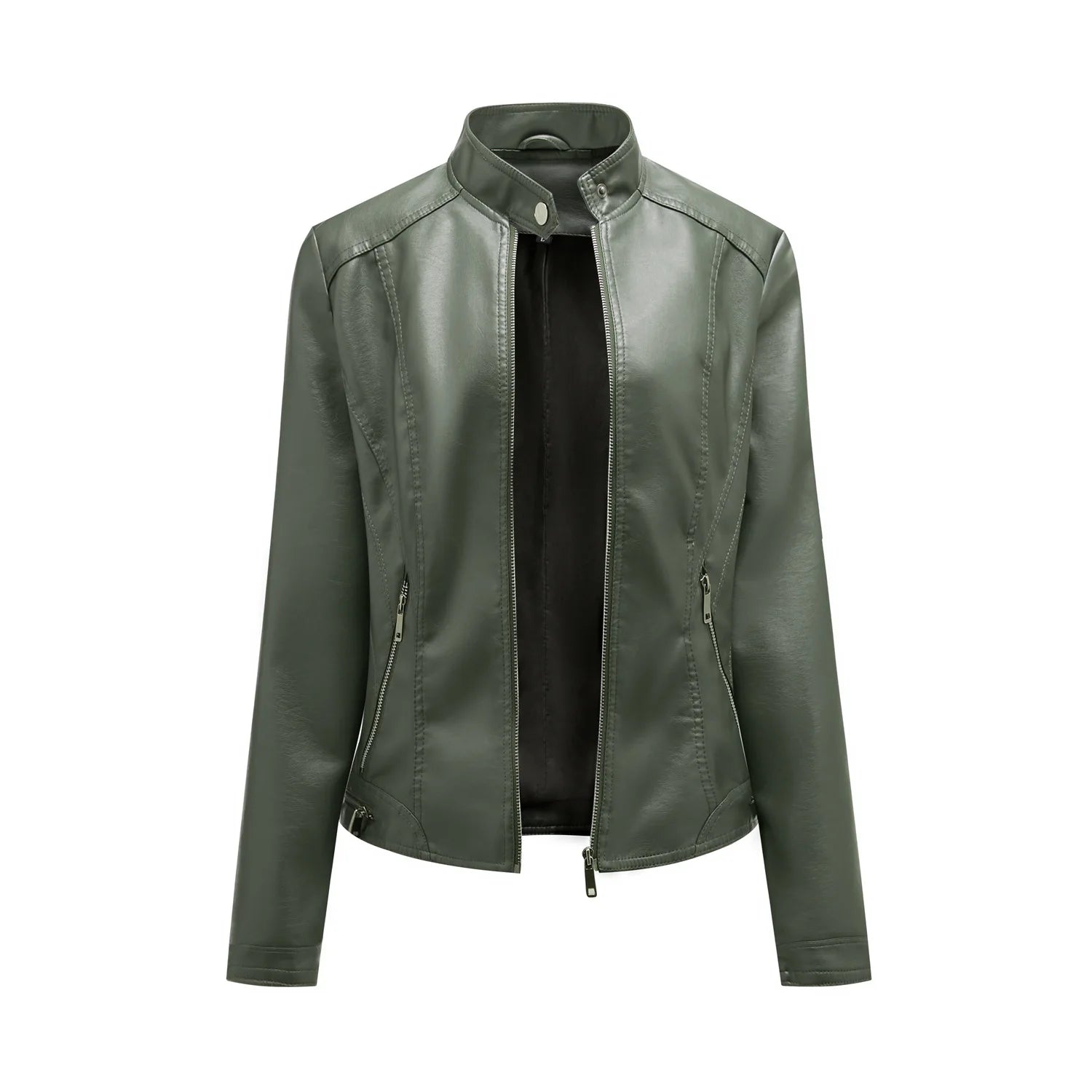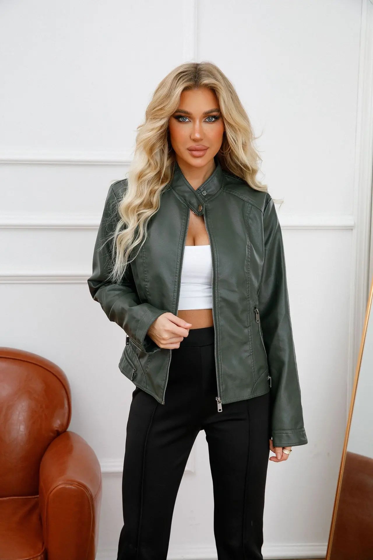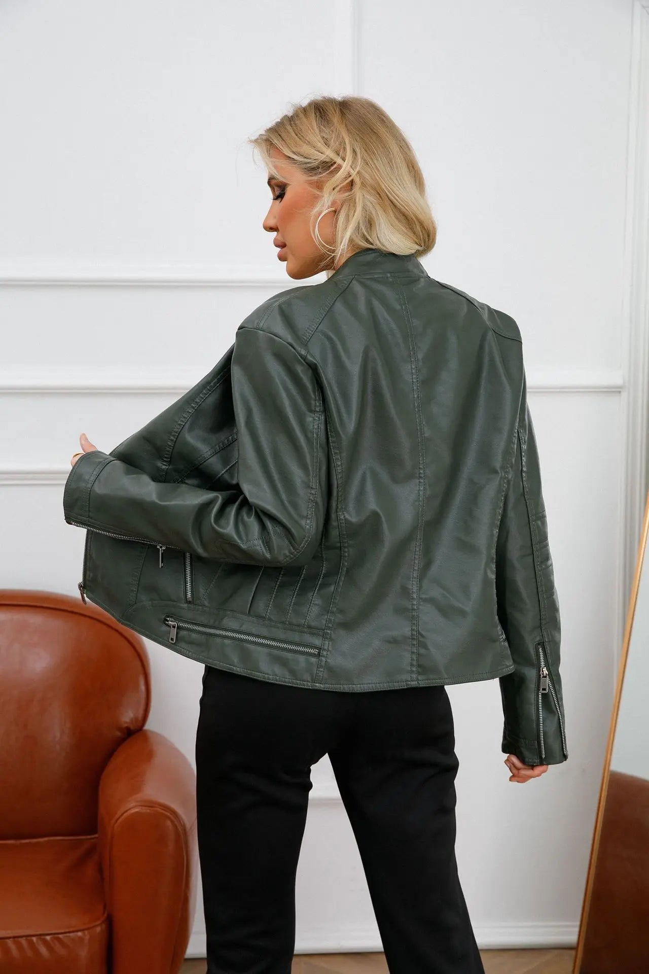Trend4us Sleek Faux Leather Zip-Up Moto Jacket