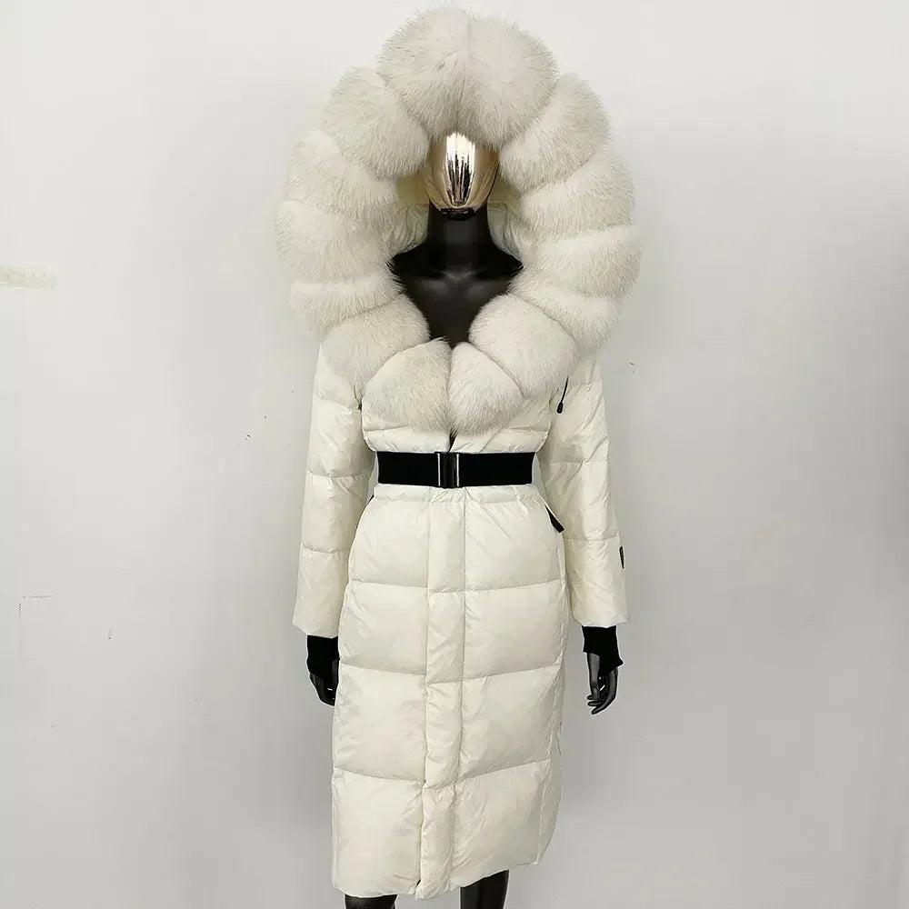 Trend4us Luxe Faux Fur Hooded Belted Long Puffer Coat