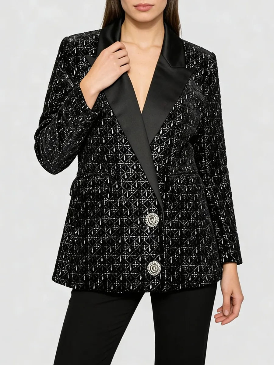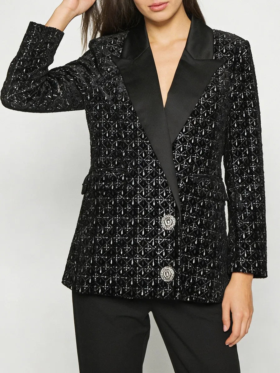 Trend4us Luxe Geometric Sequin Satin-Lapel Tailored Blazer Jacket