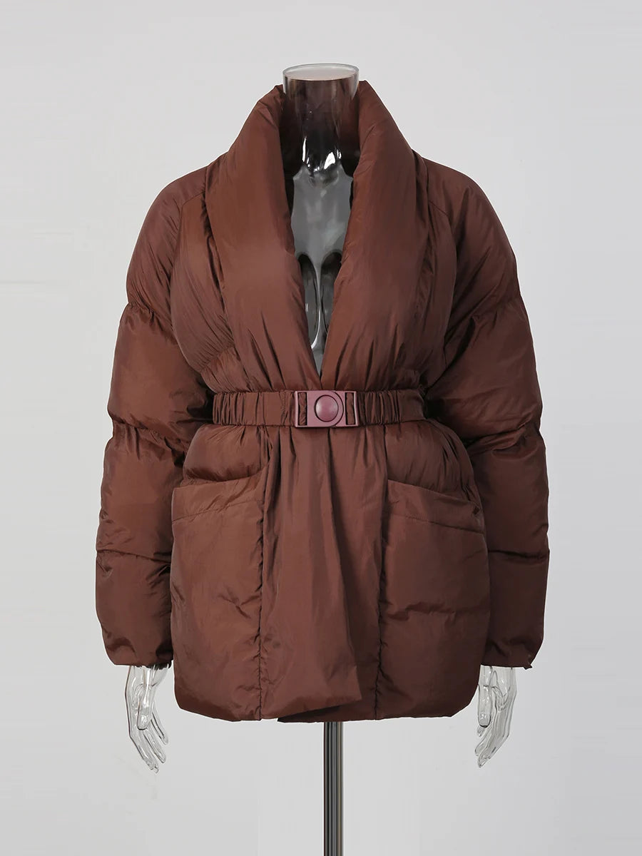 Trend4us Luxe Modern Fur Collar Belted Jacket