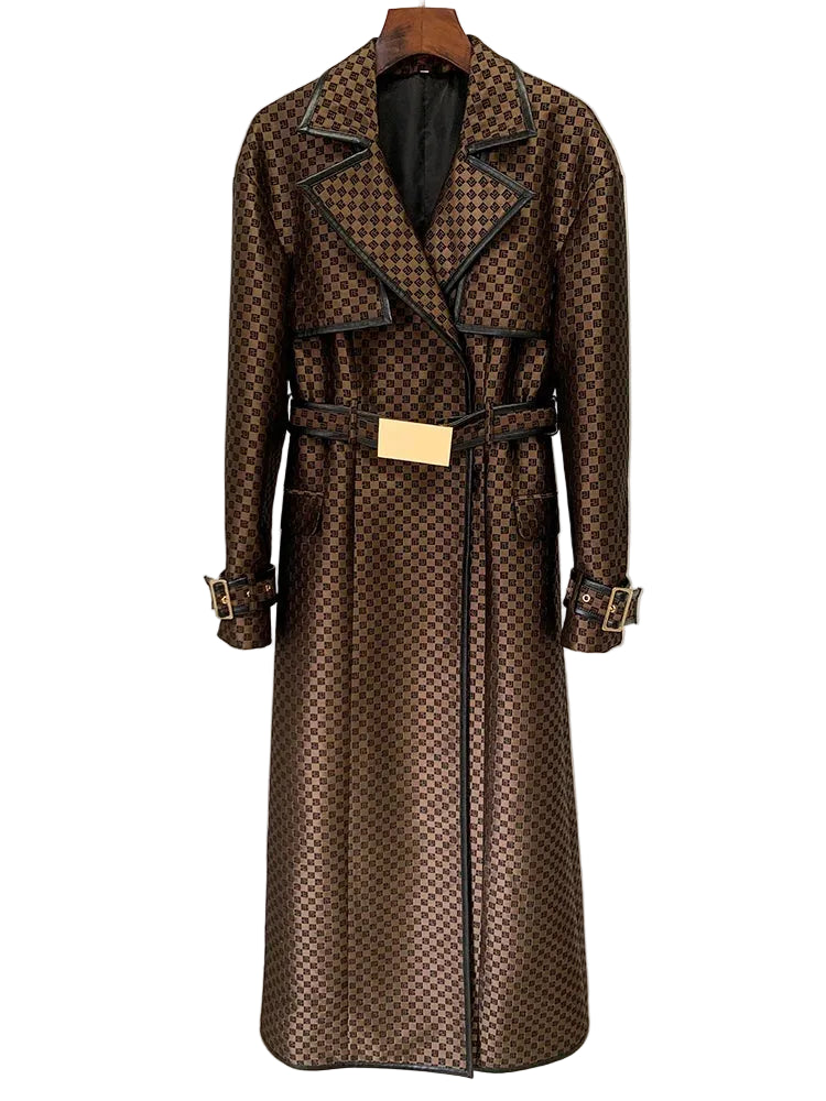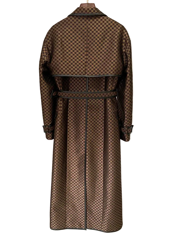 Trend4us Luxe Monogram Belted Long Trench Coat