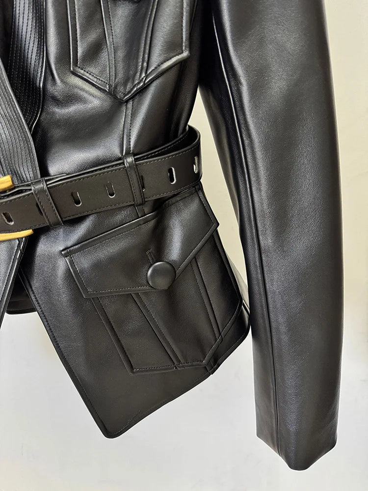 Trend4us Luxe Faux Leather Belted Utility Blazer