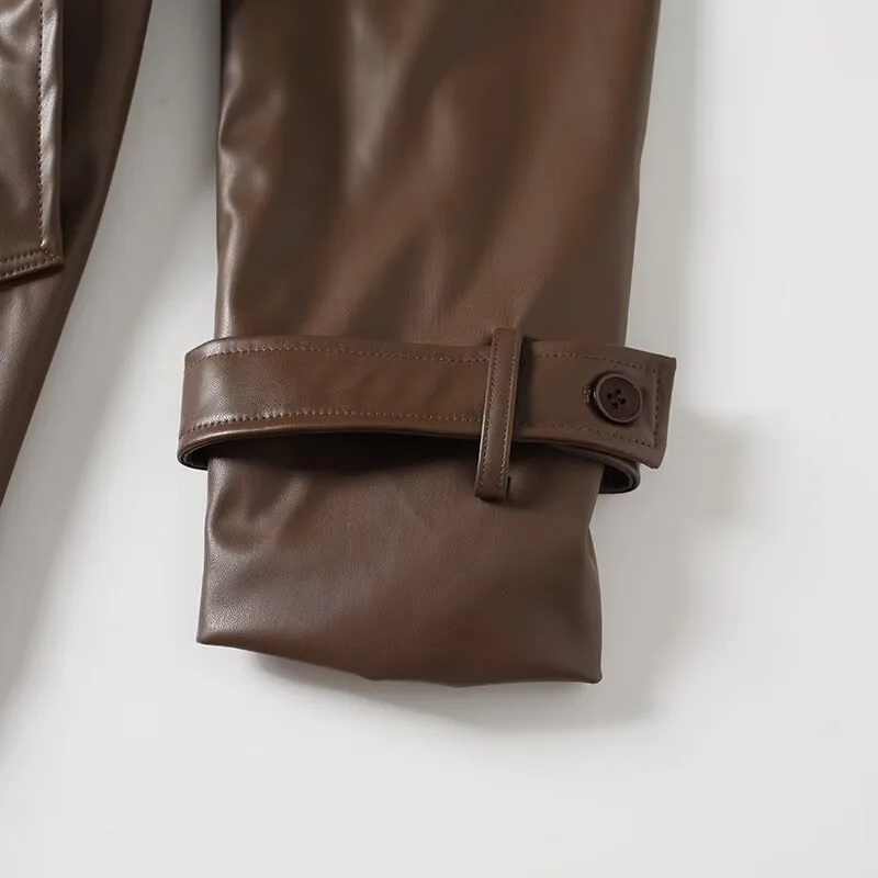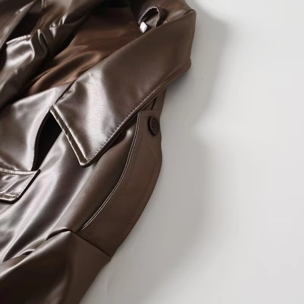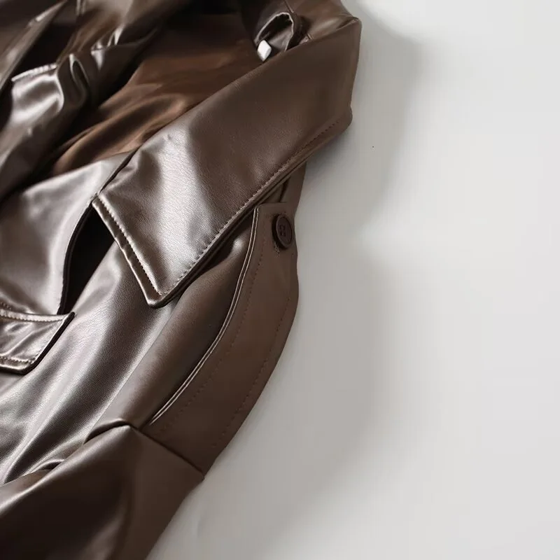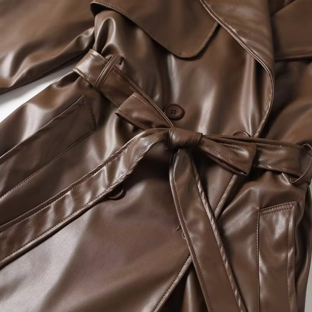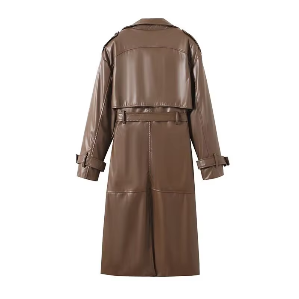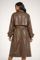 Make a powerful style statement with the Trend4us Luxe Belted Faux Leather Trench Coat, designed to elevate modern outerwear with timeless sophistication. Crafted from smooth, high-quality faux leather, this longline trench features a classic double-breasted silhouette with a structured lapel that adds refined elegance to any look.