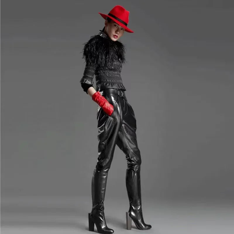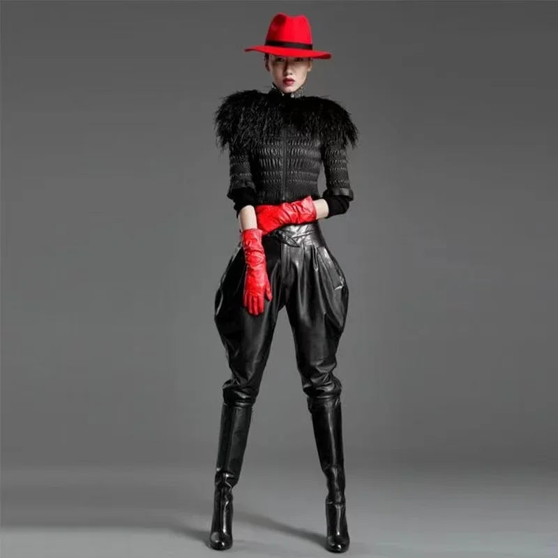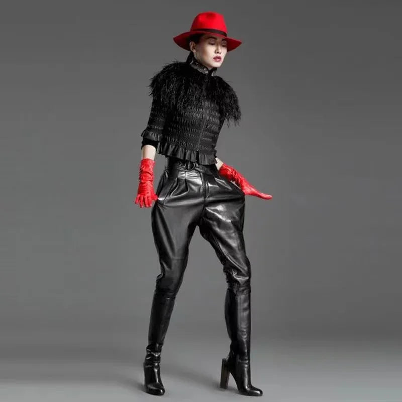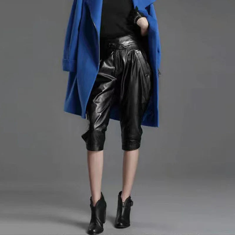 Make a bold, modern statement with the Trend4us Sleek Faux Leather Cropped Breeches Pants. Designed with a structured breeches silhouette and a chic cropped length, these pants deliver a fashion-forward edge with a polished finish. Crafted from smooth faux leather, they feature a flattering high-rise fit, subtle pleating, and tapered hems that highlight the legs while maintaining comfort and movement. Perfect for styling with boots, heels, or layered outerwear, these cropped breeches transition effortlessly from elevated streetwear to refined evening looks.