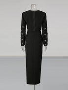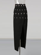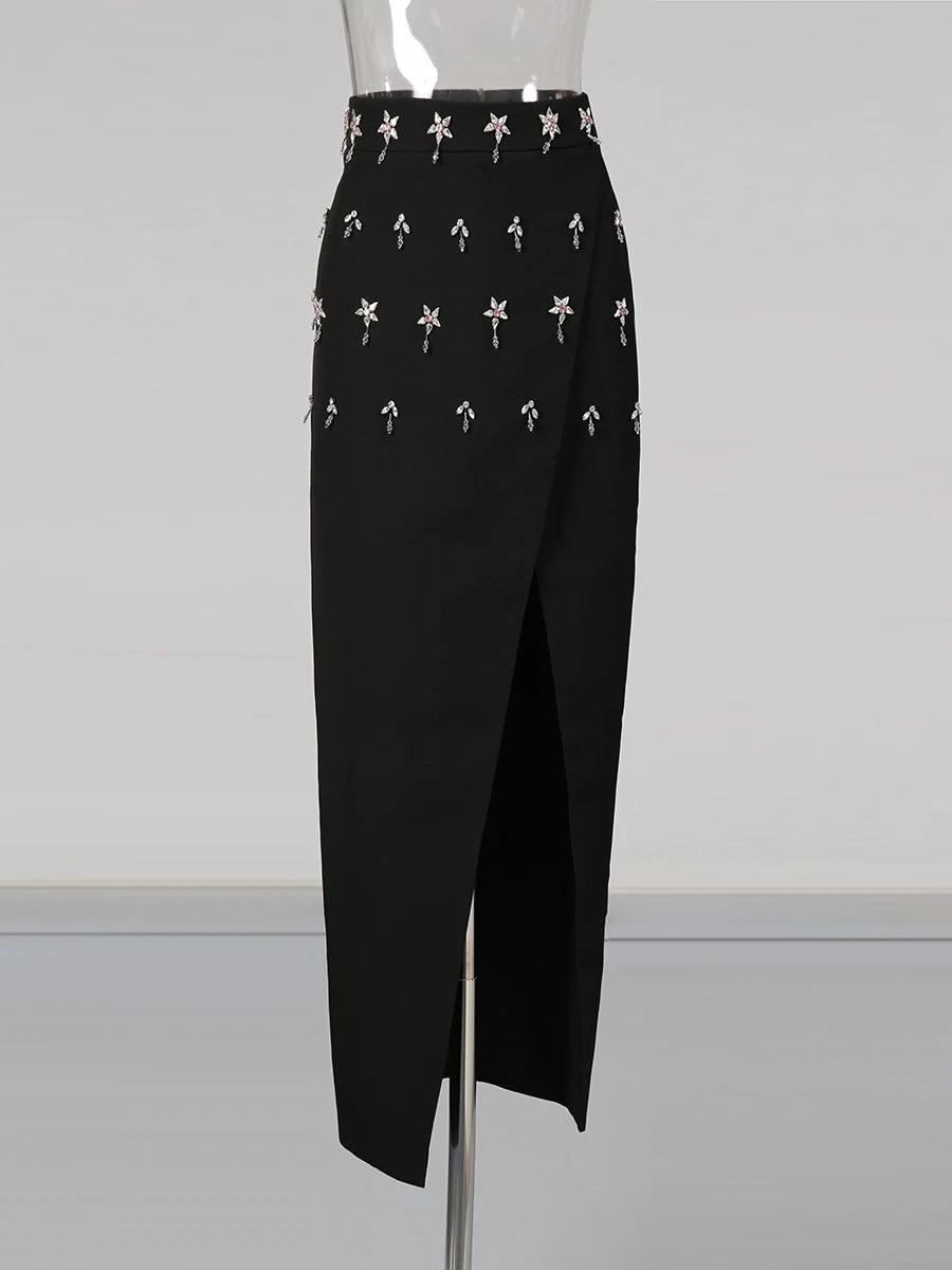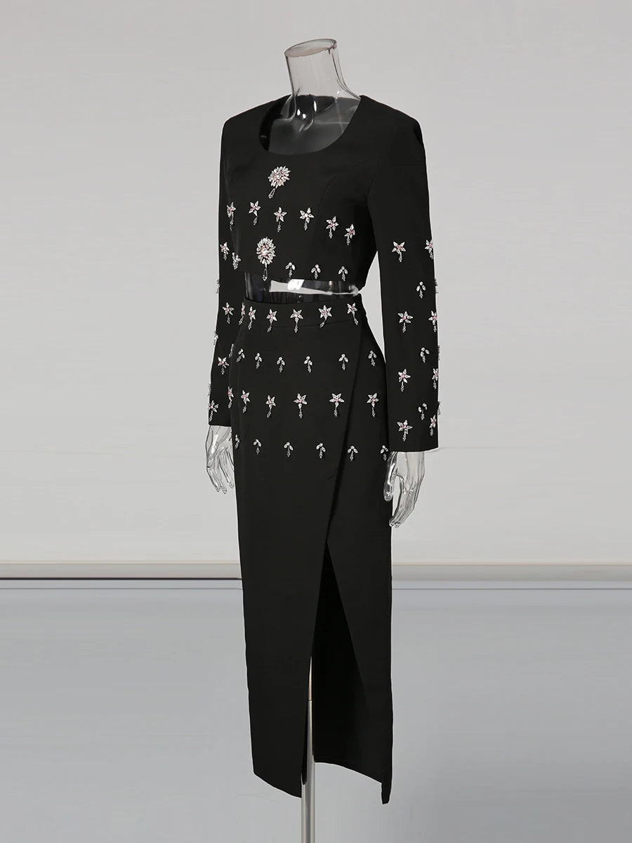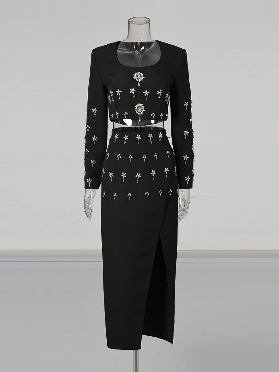 Trend4us Crystal Embellished Crop Blazer & Slit Skirt Set