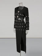 Turn heads in the Trend4us Crystal Embellished Crop Blazer & Slit Skirt Set, a bold fusion of elegance and modern glamour. Crafted from premium fabric, this two-piece set features a structured long-sleeve crop blazer adorned with dazzling crystal floral embellishments and a sleek high-slit maxi skirt to showcase your silhouette. Perfect for evening events, galas, and red-carpet moments, this set is designed for the confident woman who loves to make a statement.