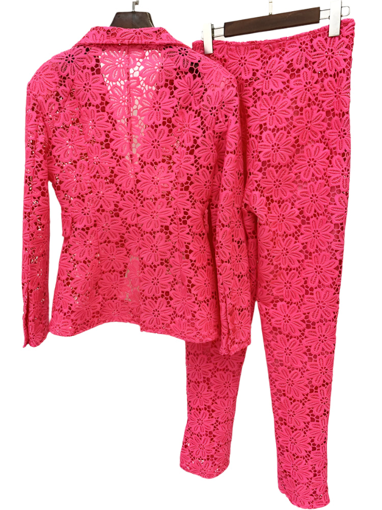 Trend4us Luxe Floral Lace Blazer & Pants Set
