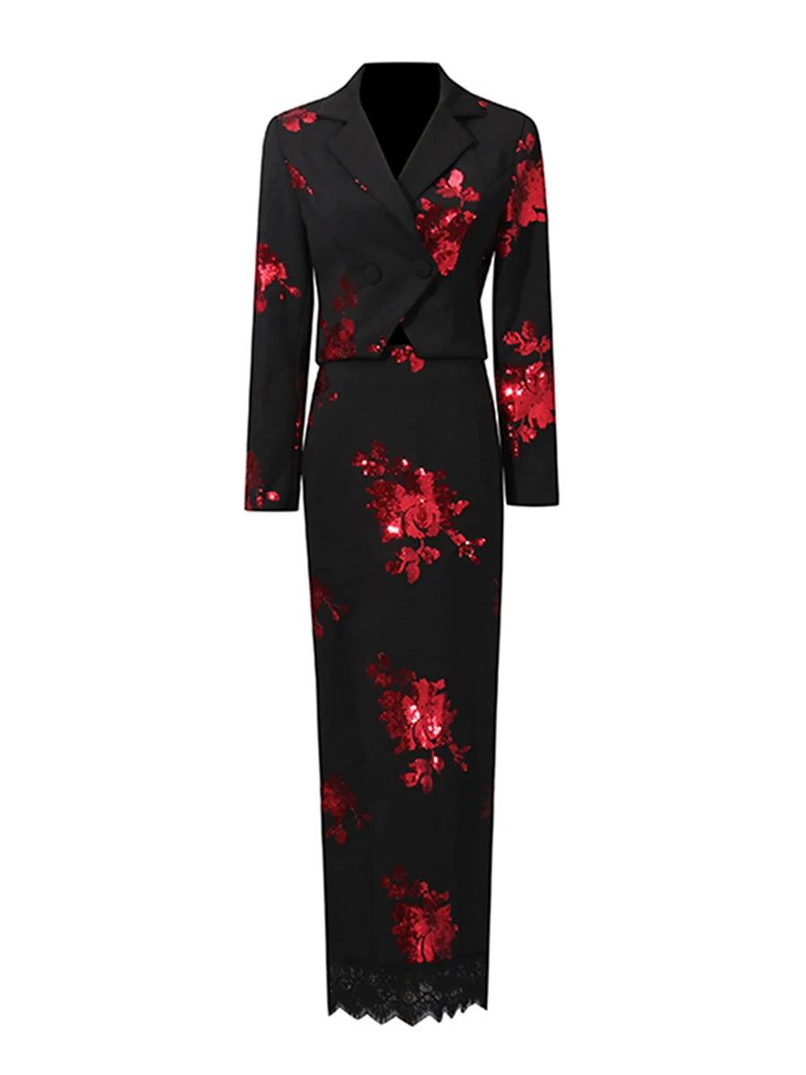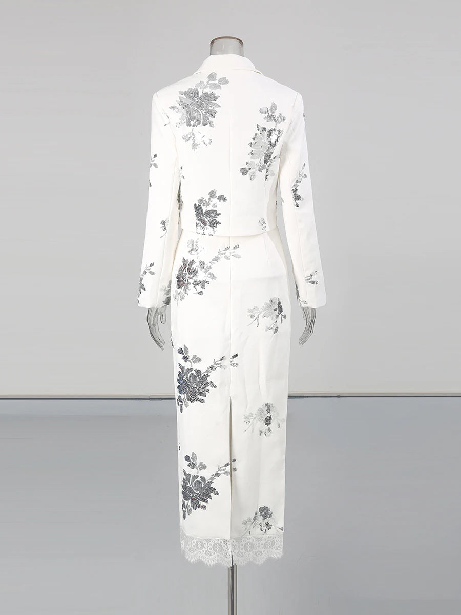 Trend4us Luxe Floral Sequin Blazer & Skirt Set