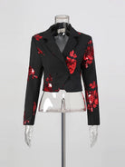 Shimmer with sophistication in the Trend4us Luxe Floral Sequin Blazer & Skirt Set, a stunning two-piece ensemble that blends elegance with high-fashion glamour. The cropped double-breasted blazer is adorned with dazzling floral sequin embroidery, paired with a high-waisted midi skirt that features matching floral sequins and delicate lace trim at the hemline. Available in silver or red floral sequins, this set delivers show-stopping sparkle while maintaining a refined tailored silhouette. Perfect for galas, evening parties, or upscale fashion events, this set makes an unforgettable statement.