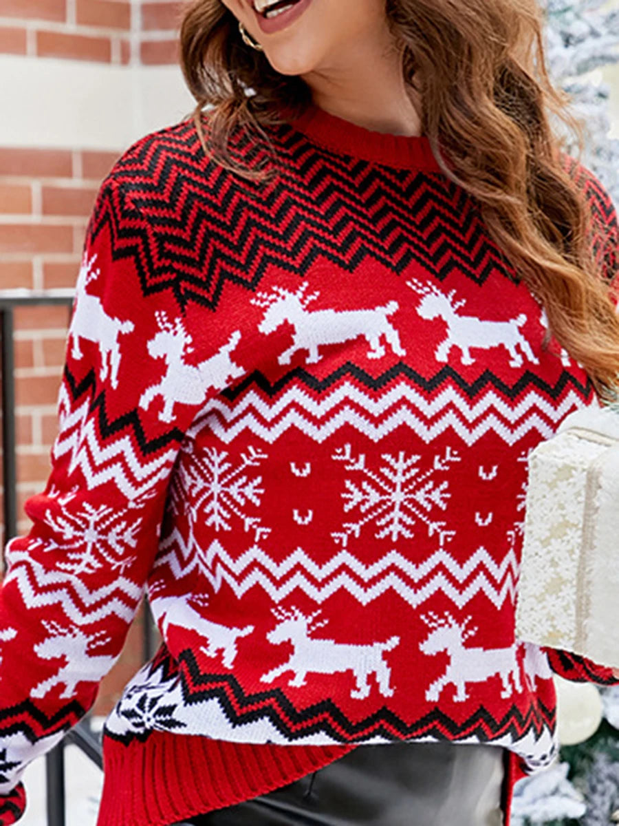 Get cozy and stylish this holiday season with the Trend4us Oversized Festive Knit Sweater. Designed in a vibrant red with classic reindeer and snowflake patterns, this sweater blends festive charm with modern chic. The oversized fit ensures maximum comfort while keeping you warm, making it perfect for winter gatherings, Christmas parties, or lounging by the fire. Pair it with leggings, jeans, or a faux leather skirt for a versatile holiday-ready look.