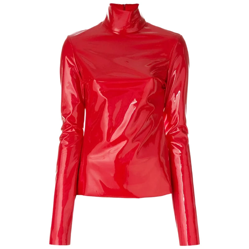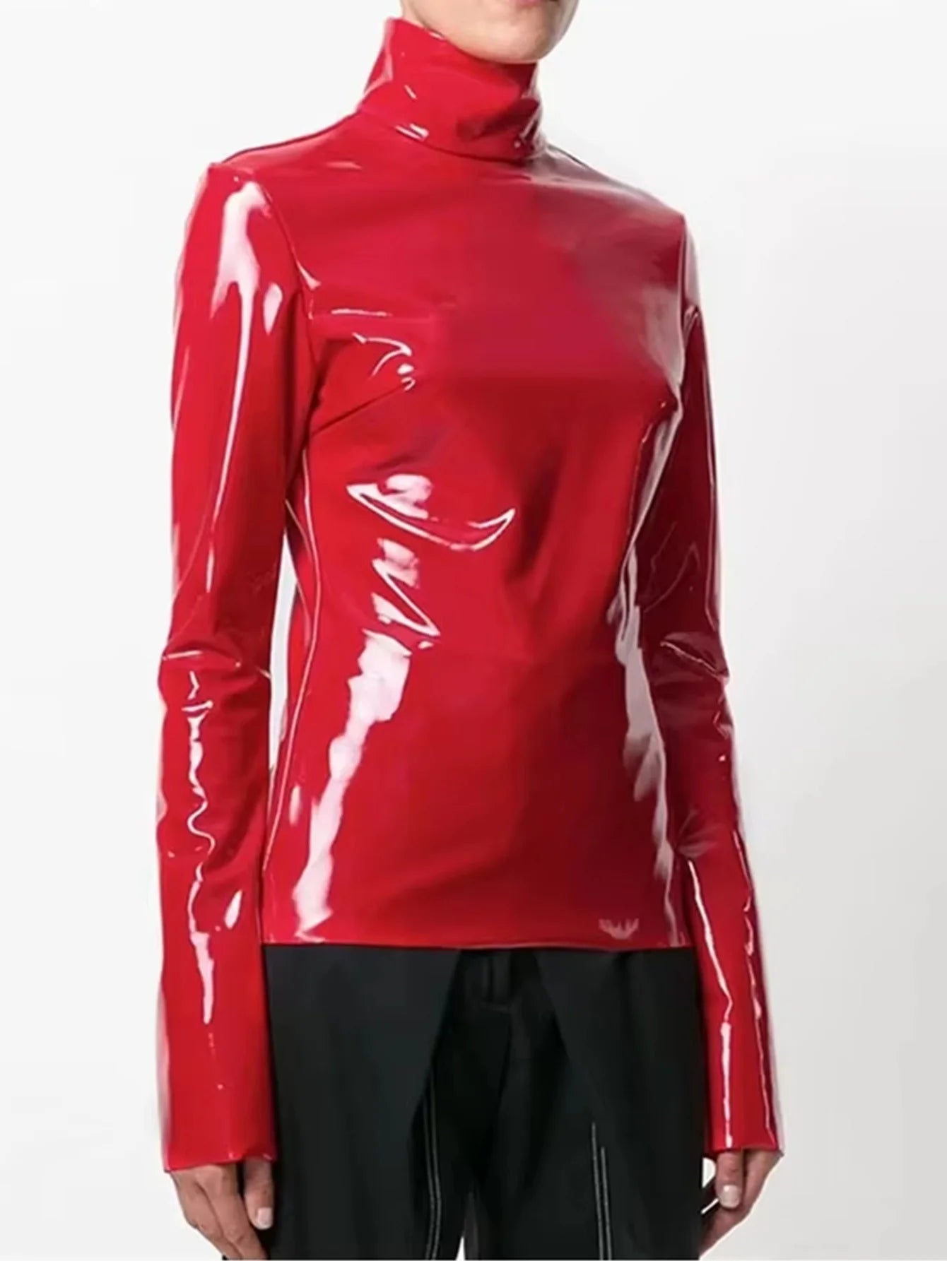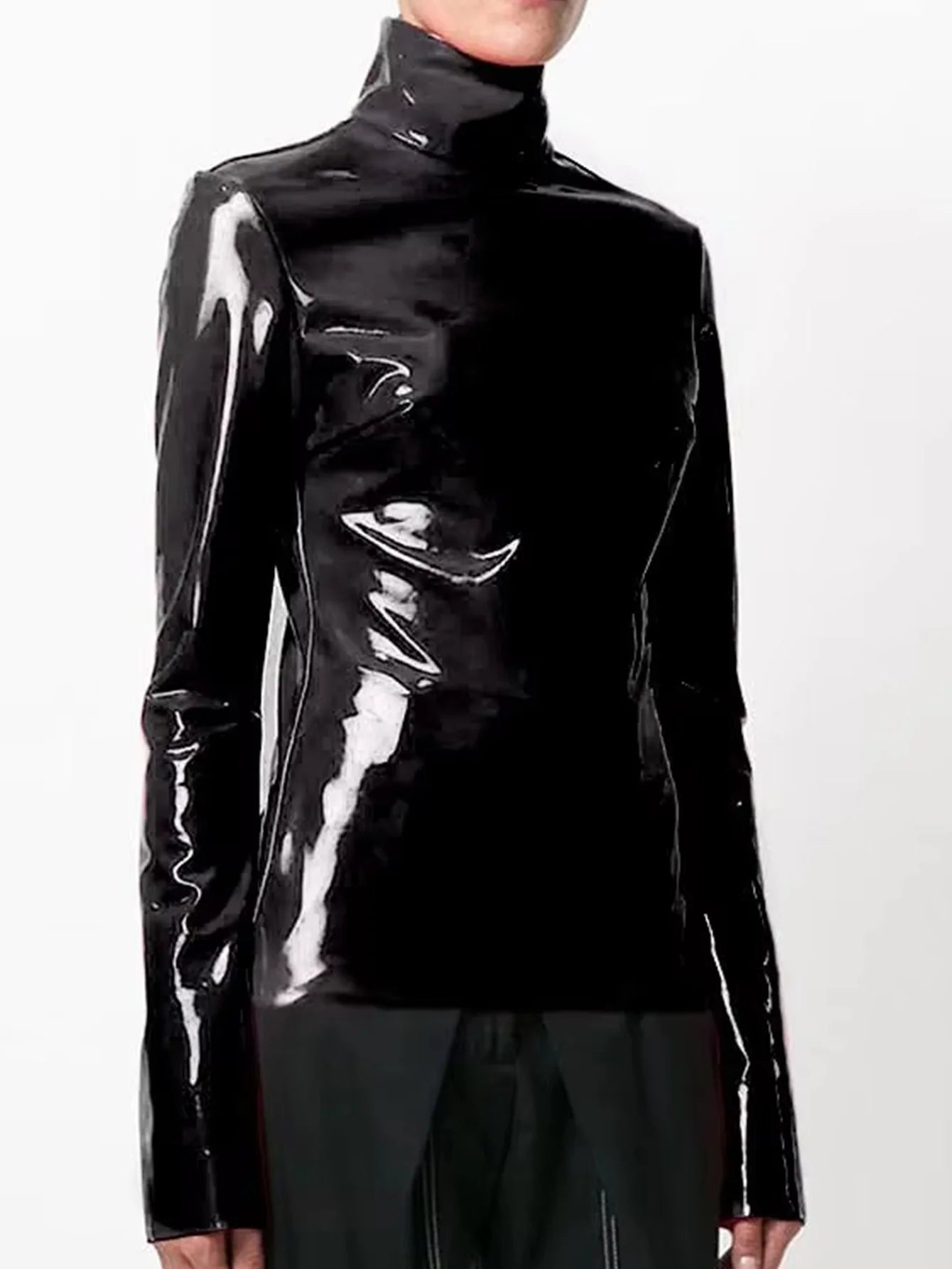 Trend4us Women's Glossy Patent Leather High-Neck Top