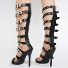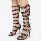 Each strap is punctuated with metallic eyelet accents for added attitude, while the slim stiletto heel elongates the legs and delivers a striking finish. The open-toe design highlights your pedicure, making these sandals perfect for nights out, photoshoots, concerts, festivals, or fashion-forward street style moments.