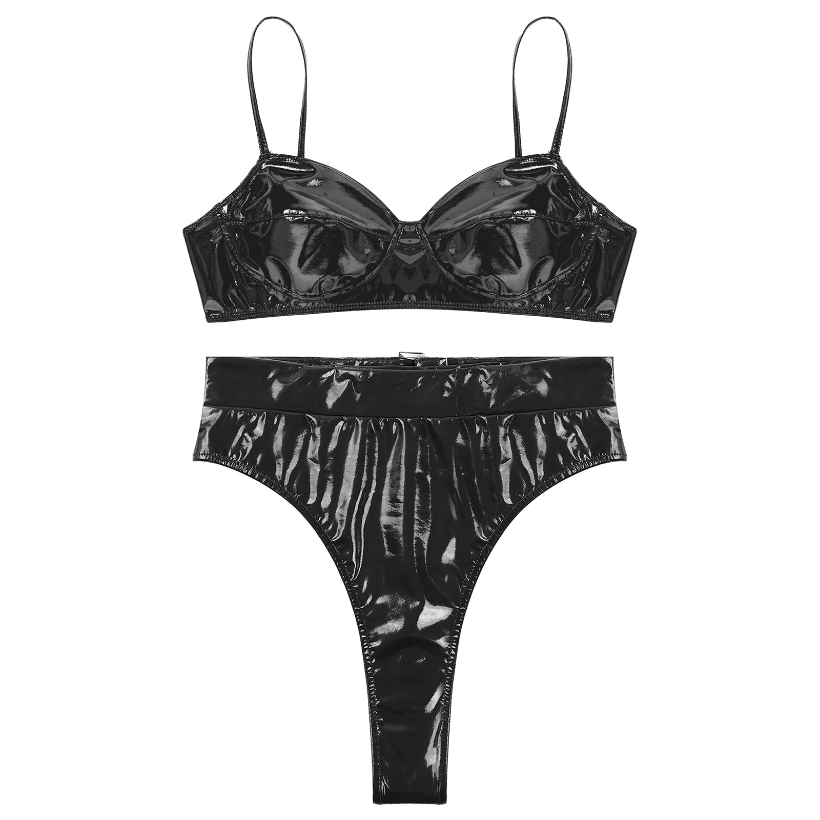 Trend4us Glossy Patent Leather Bra & High-Waisted Thong Set