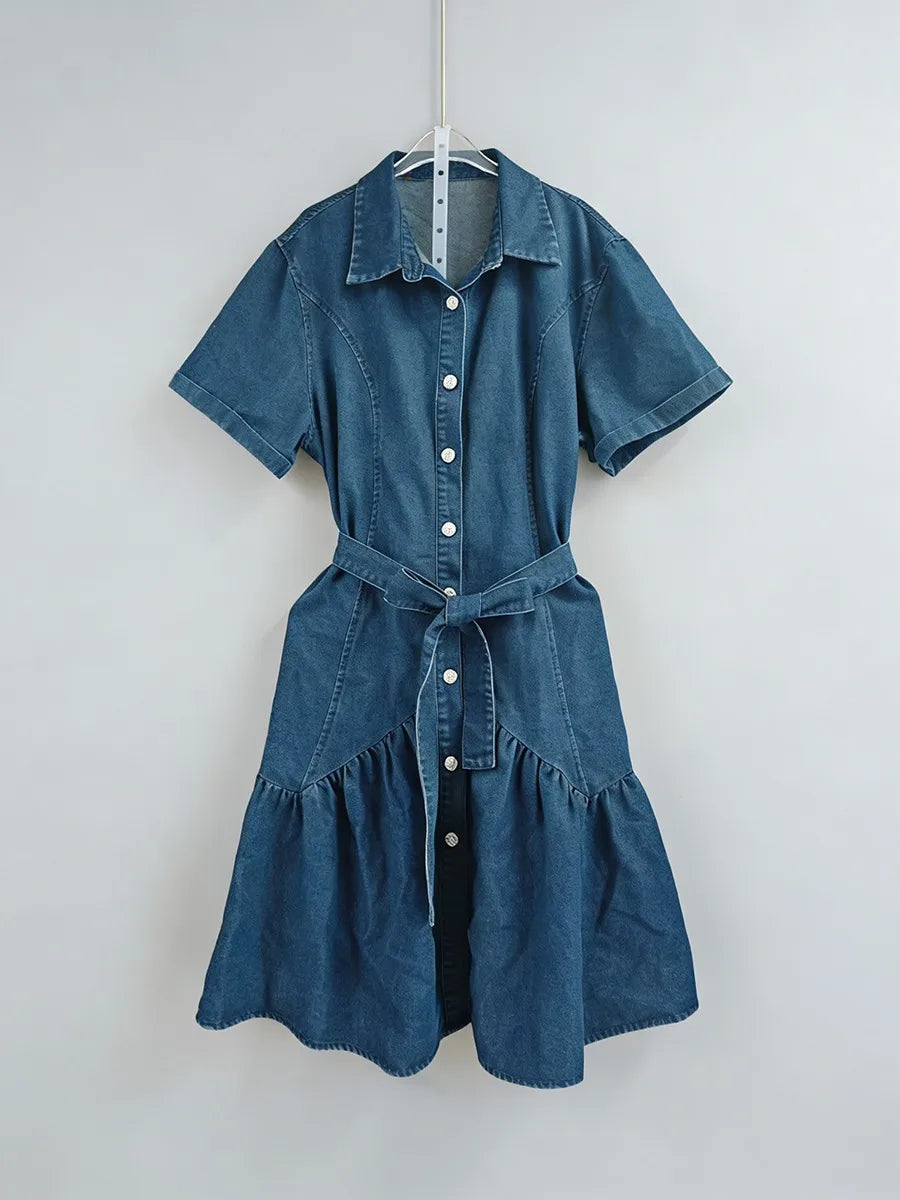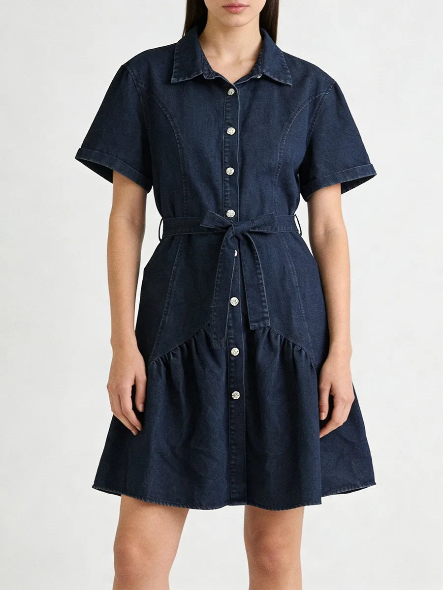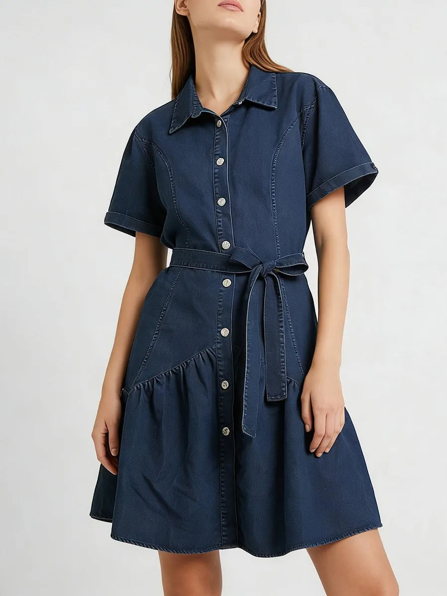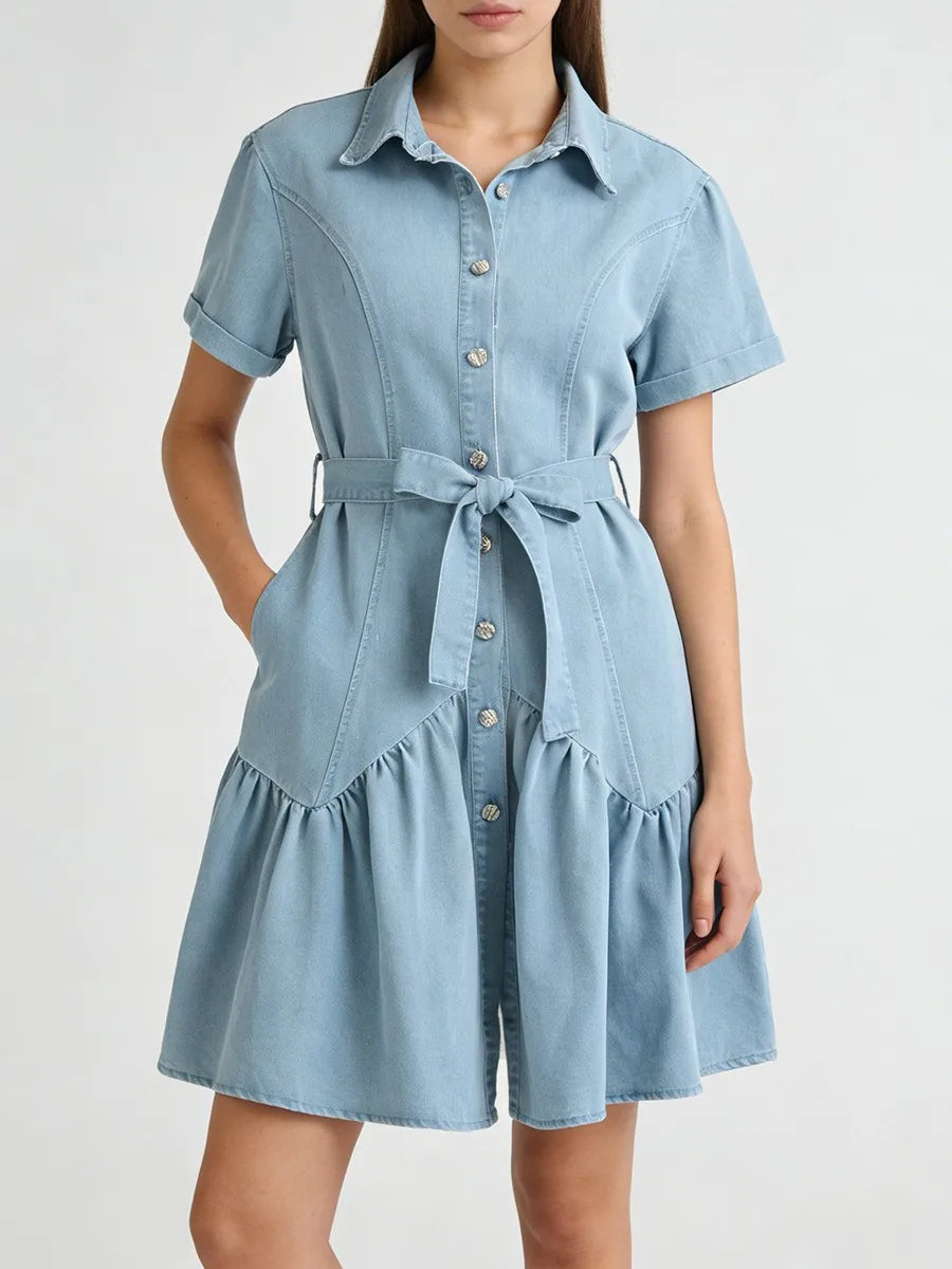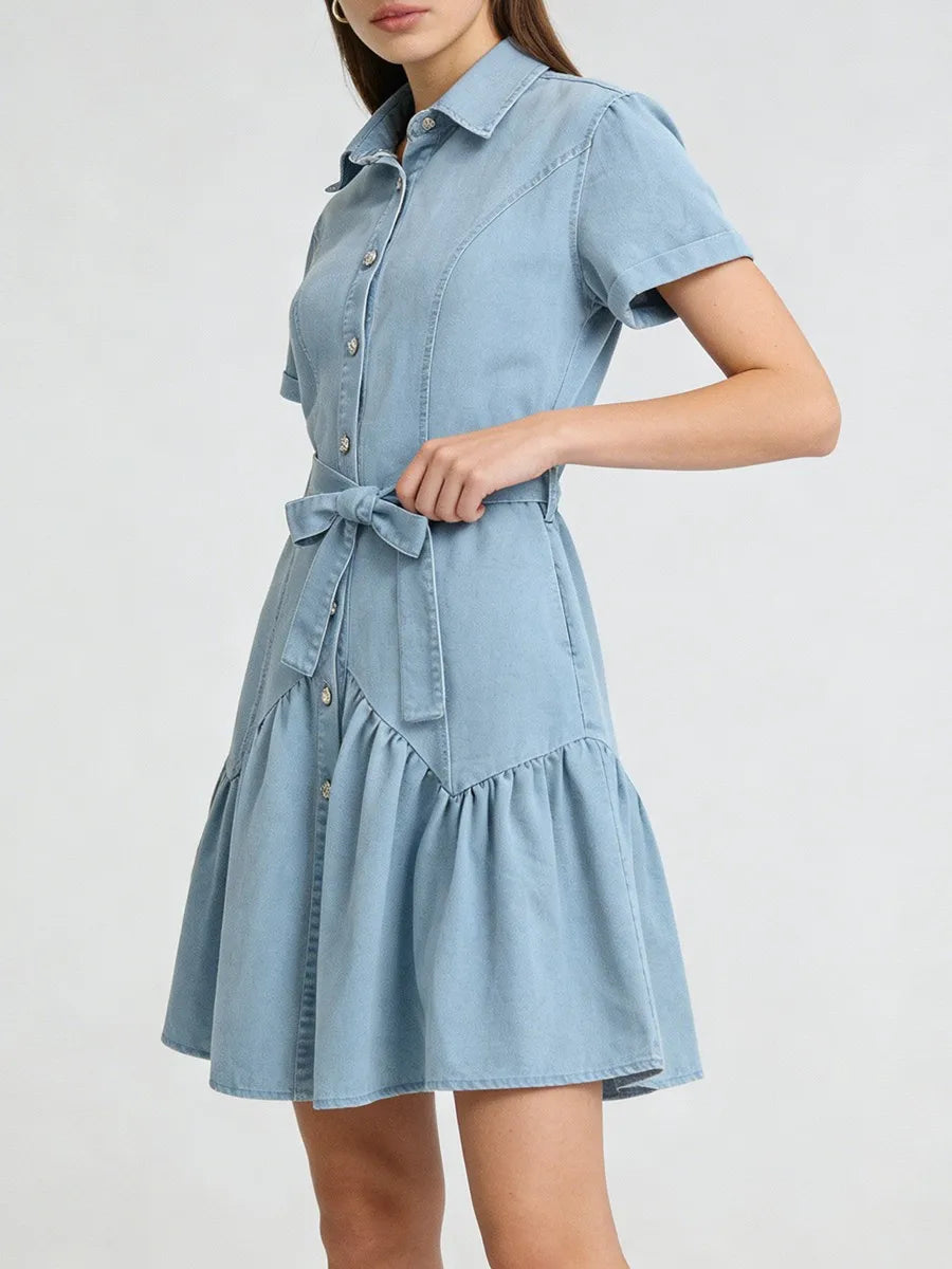 Trend4us Belted Short-Sleeve Denim Shirt Dress