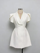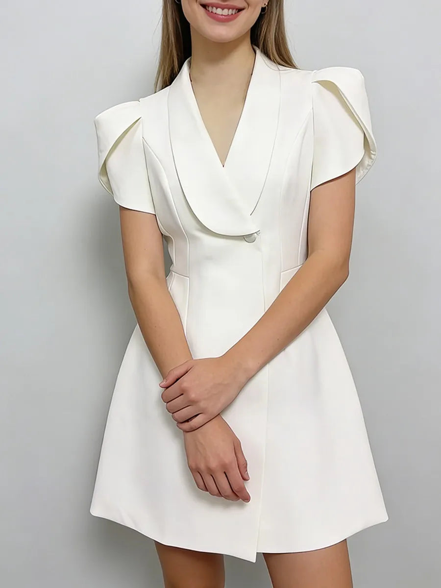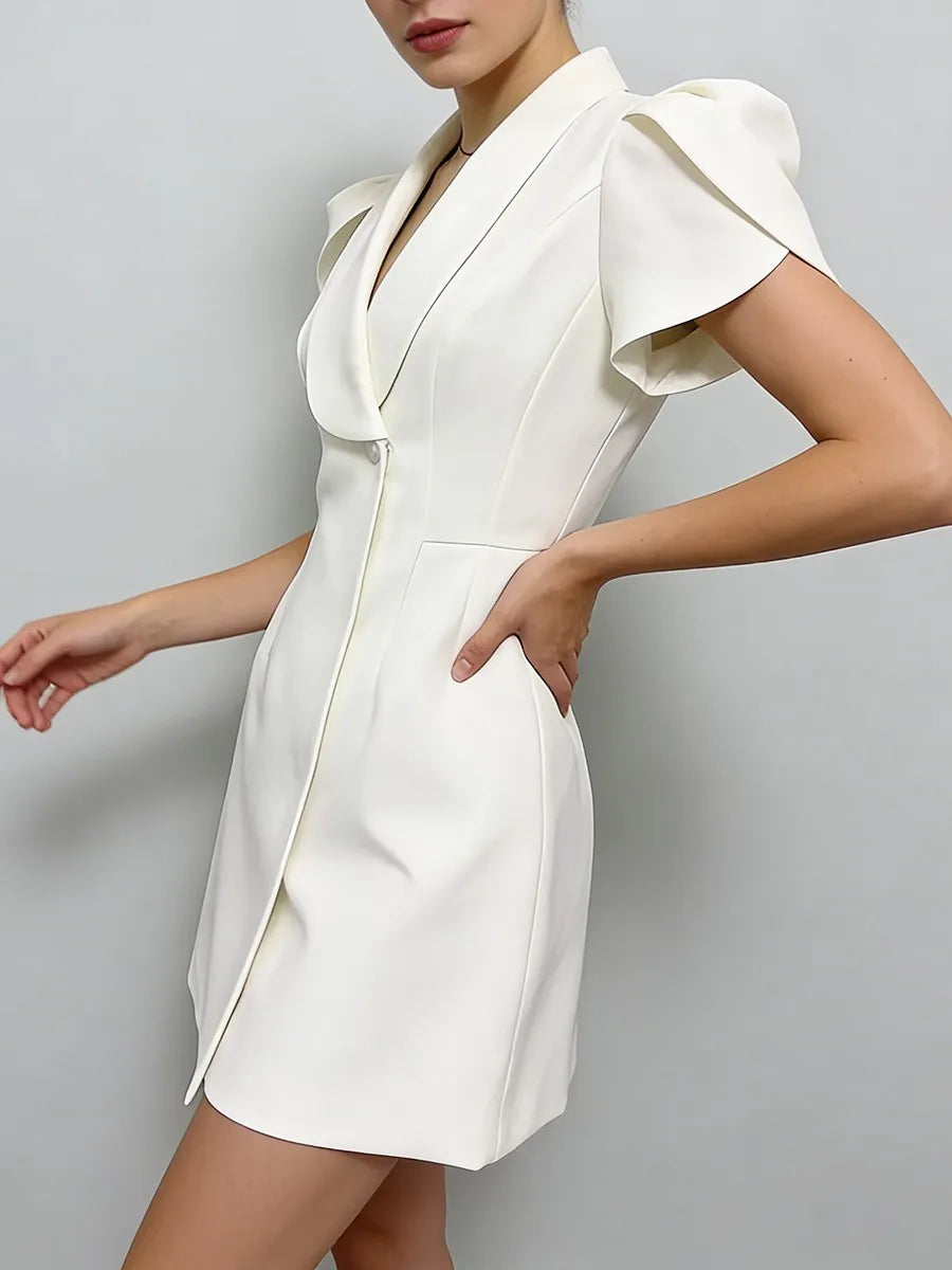 Elevate your wardrobe with the Trend4us Contrast Lapel Puff Sleeve Blazer Mini Dress, a refined fusion of tailored elegance and modern femininity. Designed with a sharp contrast lapel and sculpted waist seams, this blazer-style mini dress delivers a flattering, structured silhouette. The statement puff sleeves add a soft yet powerful touch, while the minimalist single-button closure enhances its polished appeal. Perfect for work-to-evening transitions, events, or elevated everyday styling.
