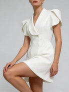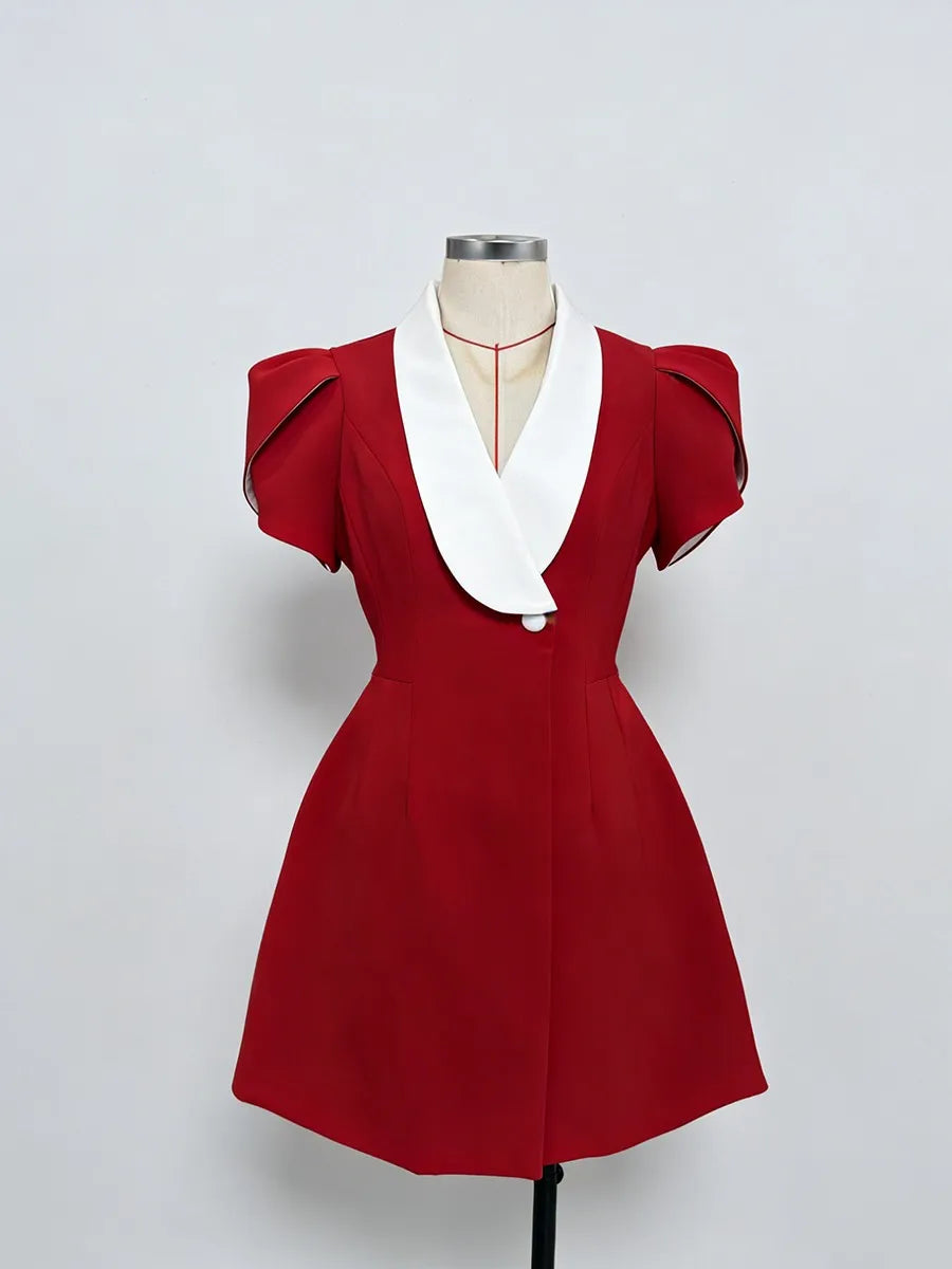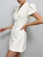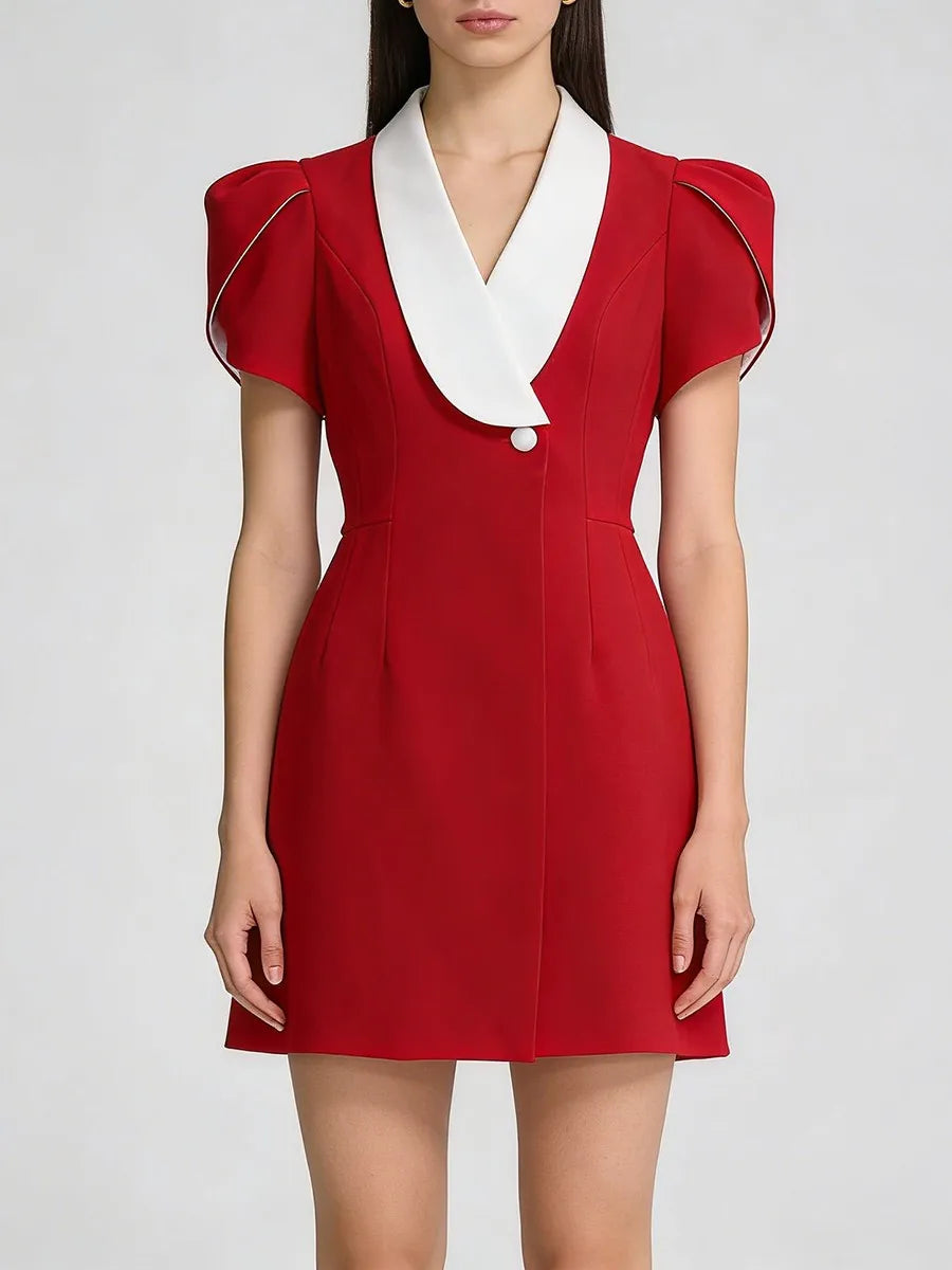 Trend4us Contrast Lapel Puff Sleeve Blazer Mini Dress