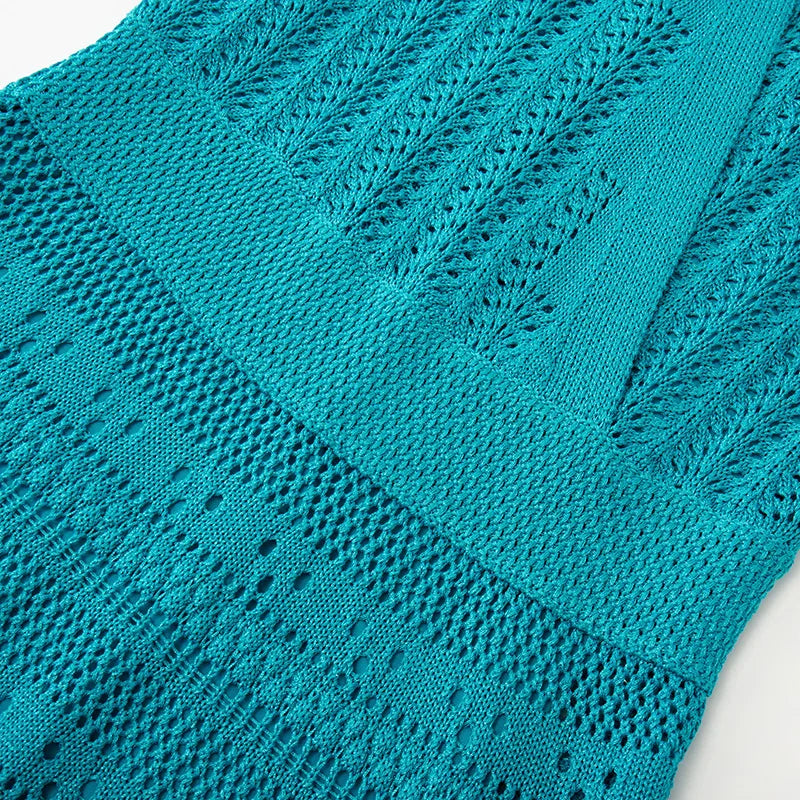 Trend4us Crochet Knit Flare Sleeve Maxi Dress
