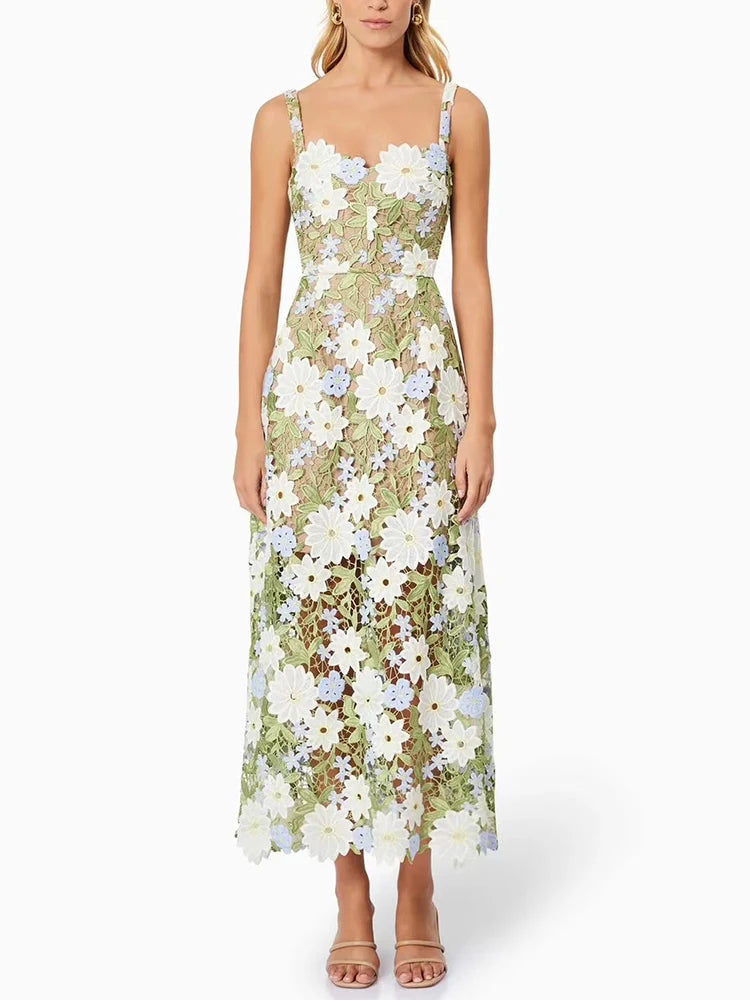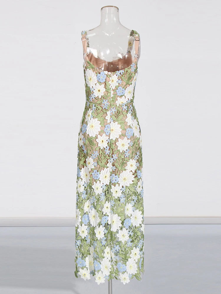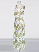 Make a statement in the Trend4us Luxe 3D Floral Embroidered Maxi Dress, a captivating blend of elegance and artistry. Featuring intricate 3D floral embroidery over a sheer mesh overlay, this sleeveless dress boasts a fitted bodice, square neckline, and flattering A-line silhouette that falls gracefully to ankle length. Perfect for garden parties, weddings, or upscale brunches.