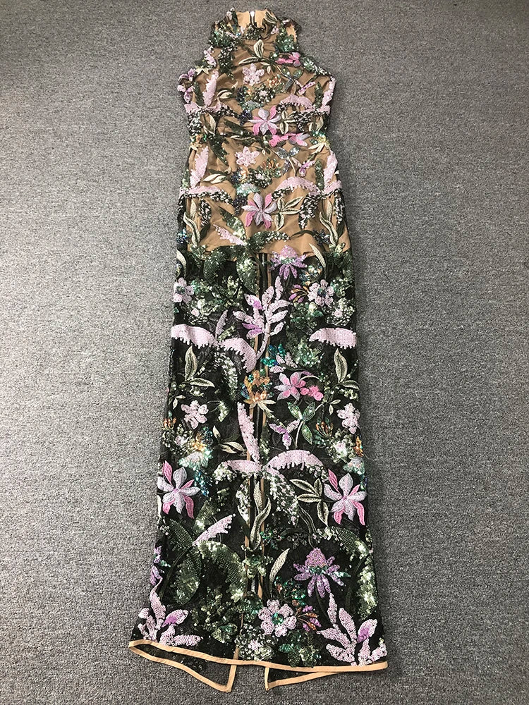 Unveil your inner goddess in the Trend4us Luxe Floral Embroidered Sheer Maxi Dress, a masterpiece of elegance and intricate craftsmanship. This stunning gown features a high-neck silhouette and a form-fitting design that flows into a graceful floor-length hem, offering timeless sophistication with a modern twist.