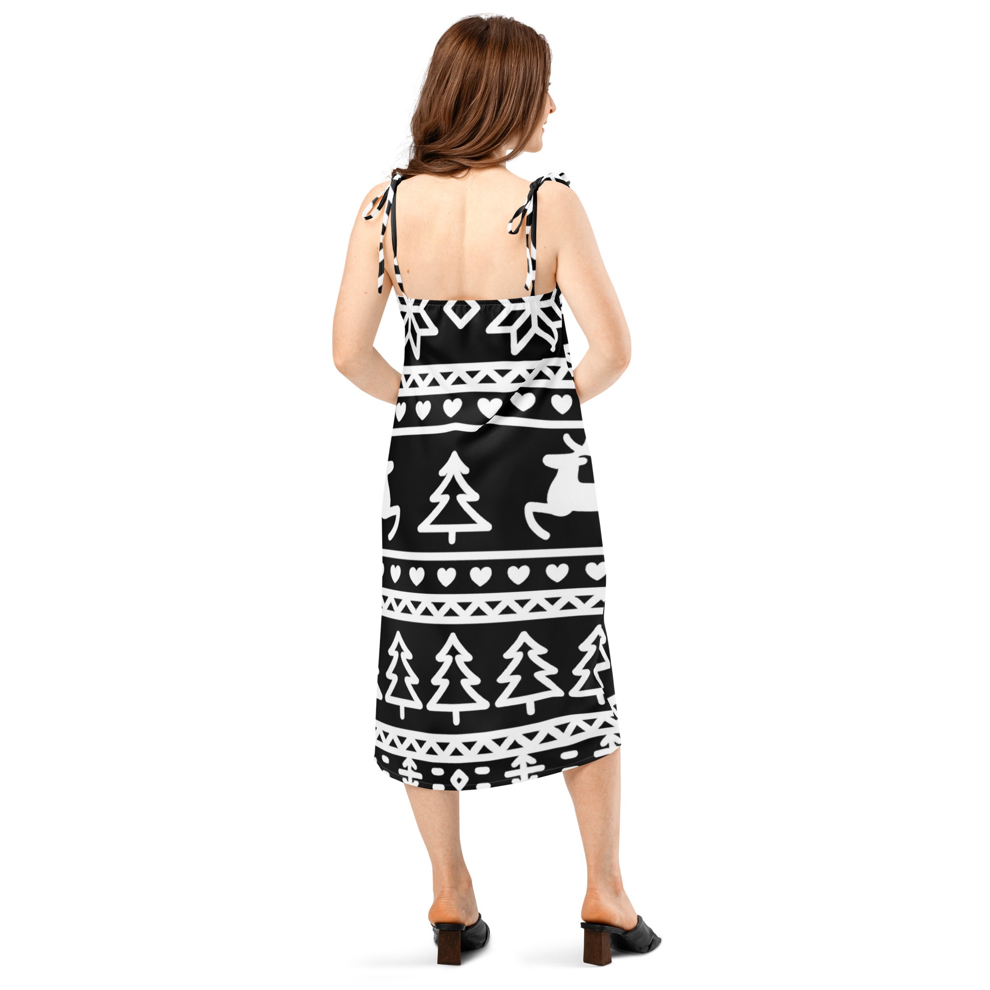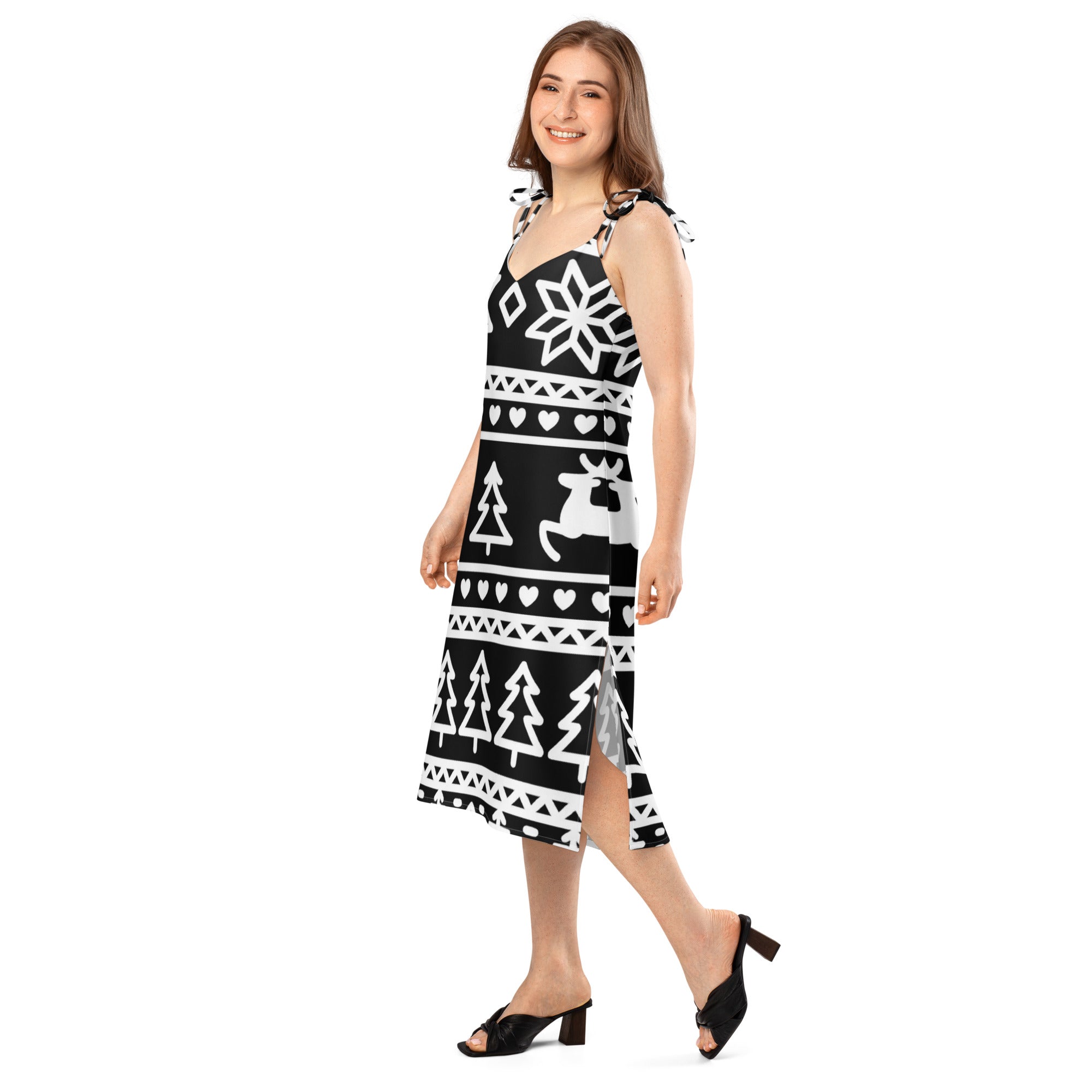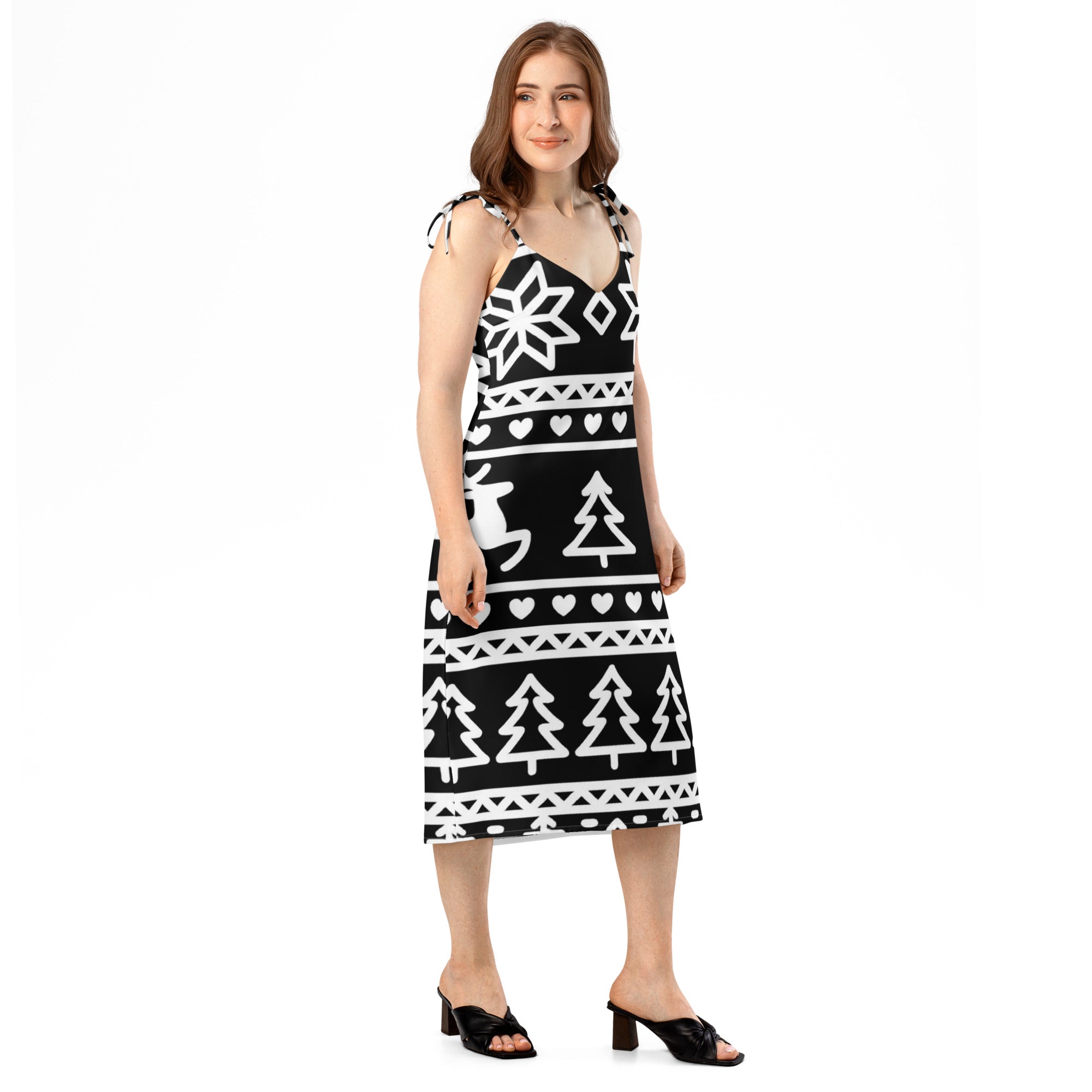 The Trend4us Tie-Strap Vintage Black Midi Dress blends timeless vintage charm with modern design, featuring adjustable tie straps for a customizable fit. Its midi length offers a versatile silhouette suitable for various occasions, while the classic black shade effortlessly complements seasonal Nordic style. Crafted to combine elegance with comfort, this dress is perfect for those seeking refined, seasonally inspired wardrobe essentials.