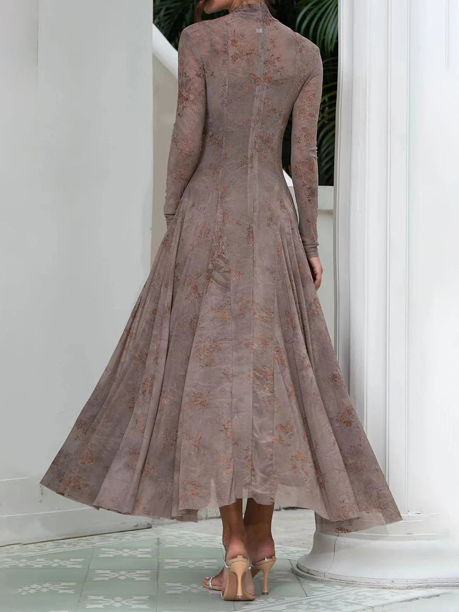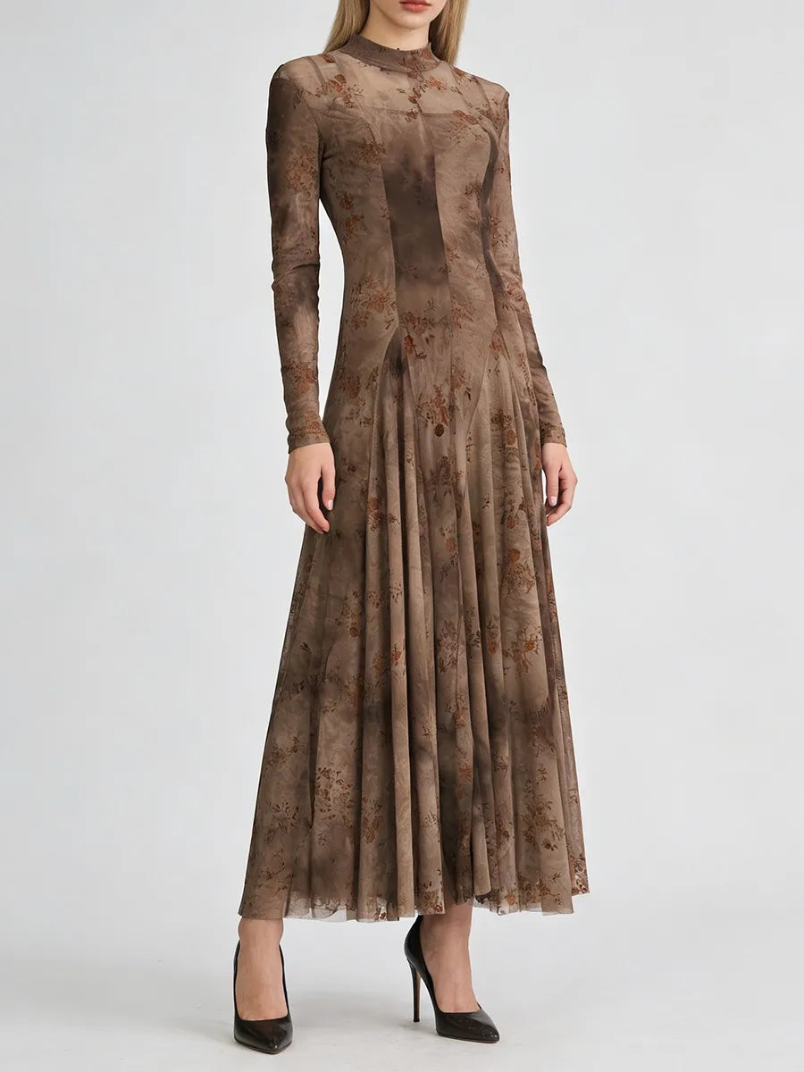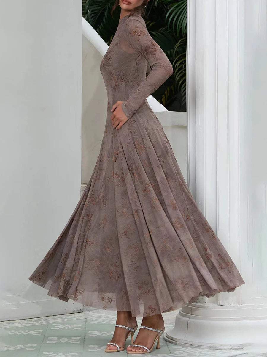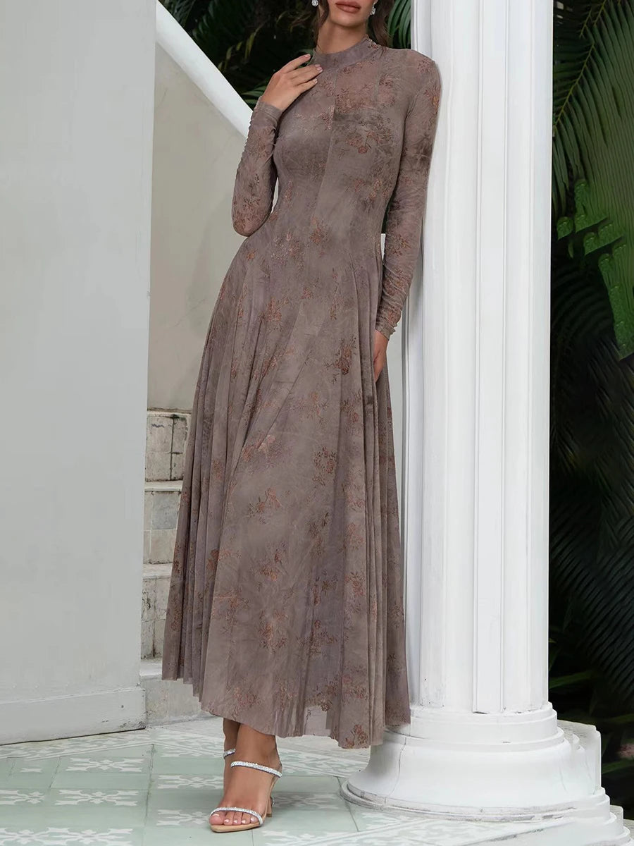 Embrace timeless elegance with this vintage-inspired maxi dress, featuring delicate floral patterns rendered in luxurious mesh and velvet textures. The long sleeves provide sophisticated coverage while the flowing silhouette creates an effortlessly graceful line from shoulder to hem. Perfect for evening events, special occasions, or elevated everyday wear, this piece combines romantic detailing with refined construction. The interplay of mesh and velvet adds dimensional depth and visual interest, making it a versatile statement piece that transitions seamlessly from season to season.