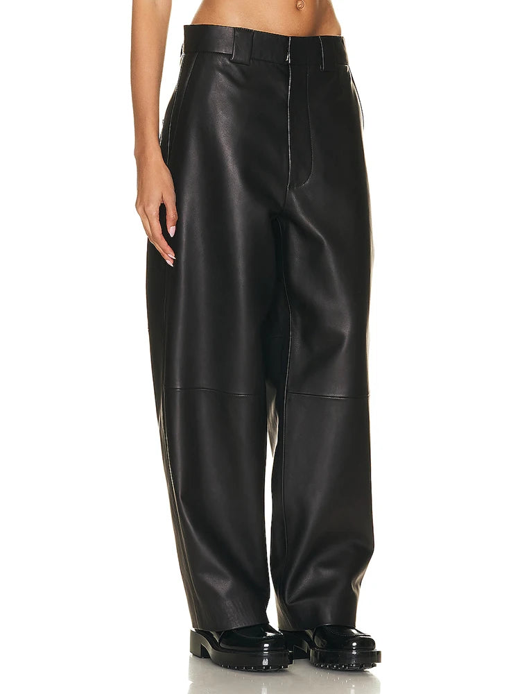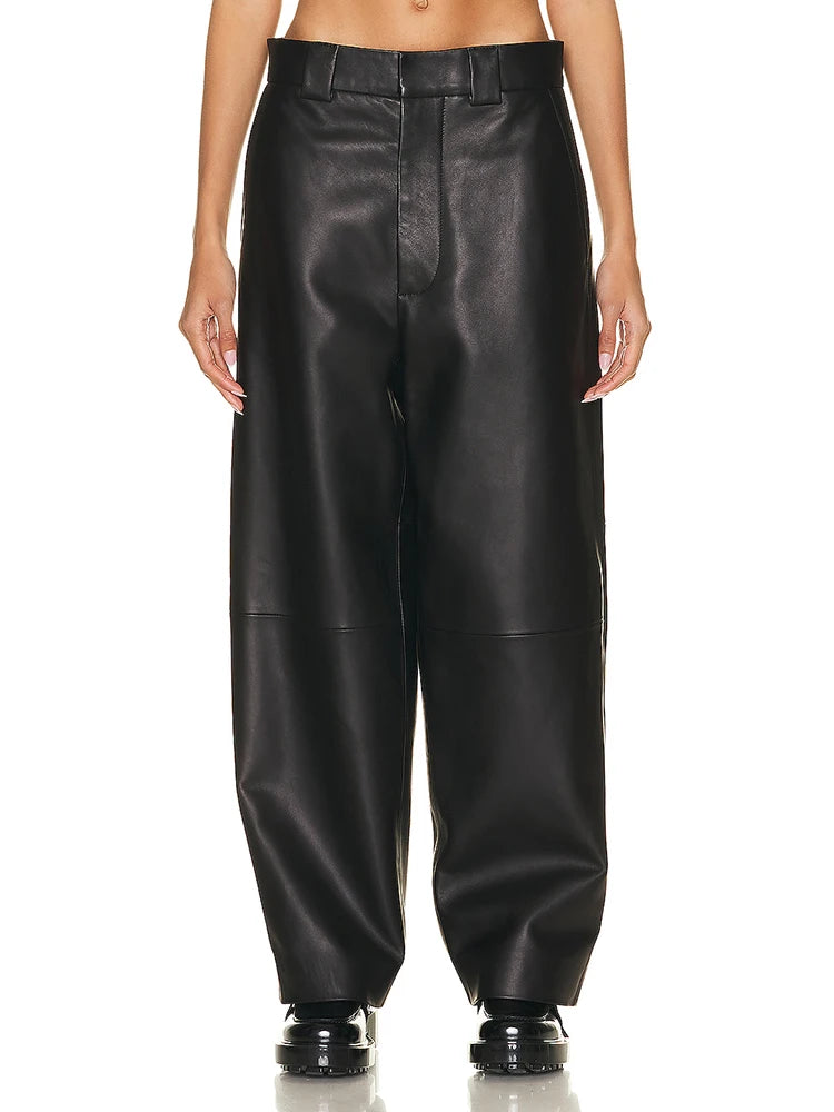 Step into effortless style with the Trend4us Women's High-Waisted Faux Leather Wide Leg Pants. These chic pants feature a high-waisted design and a modern wide leg cut, crafted from premium faux leather for a sleek and sophisticated look. Perfect for elevating any casual or office outfit.