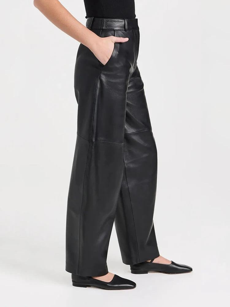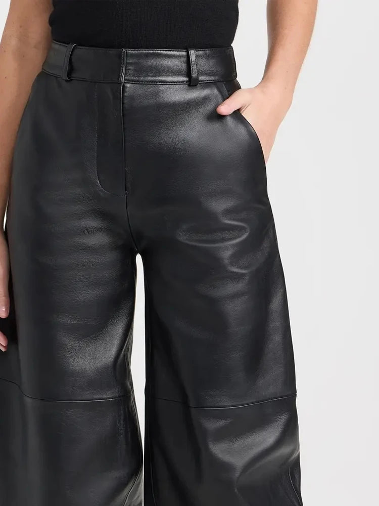 Trend4us Women's High-Waisted Faux Leather Wide Leg Pants