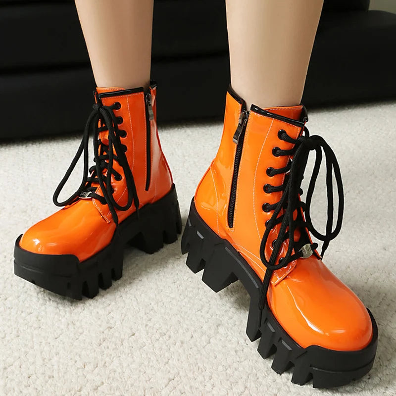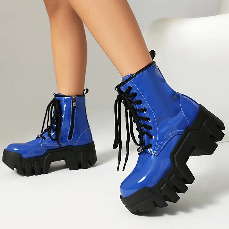 Power up your look with the Trend4us Chunky Platform Combat Boots. Designed with a bold thick sole, lace-up front, and sleek faux leather finish, these boots bring a rugged edge to streetwear and everyday fashion. The cushioned insole and sturdy platform provide comfort and height—perfect for adding attitude to any outfit.