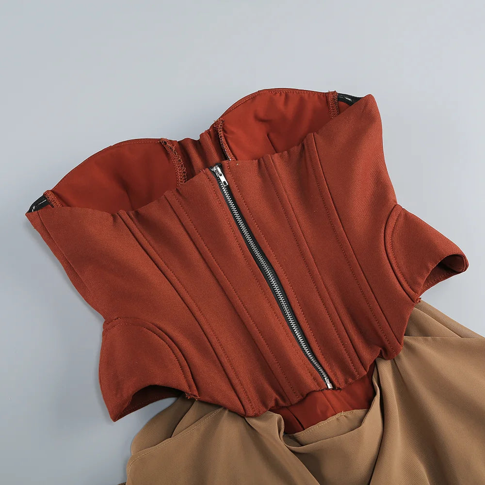 Elevate your wardrobe with the Trend4us Lace-Up Corset Sheer Panel Maxi Dress, expertly designed to combine structure and elegance. Featuring a lace-up corset bodice, this dress offers a flattering silhouette with adjustable fit, while sheer panels add a sophisticated, modern touch. The flowing maxi length ensures graceful movement, making it ideal for formal occasions or stylish evenings out. Crafted to balance comfort and statement style, this dress is a refined choice for those seeking a blend of classic corsetry and contemporary design.